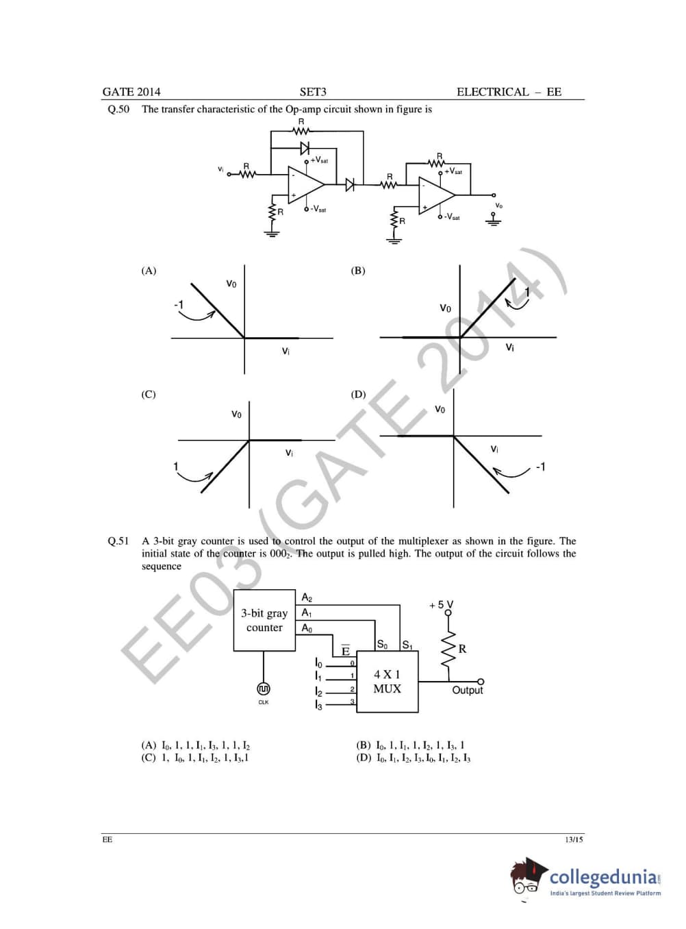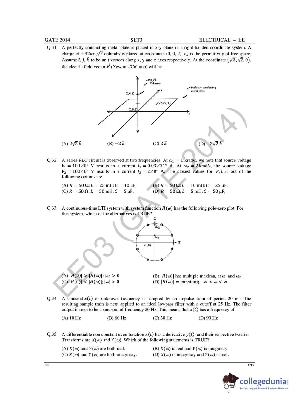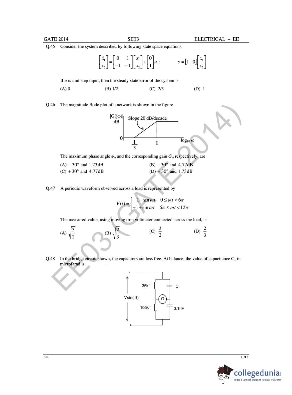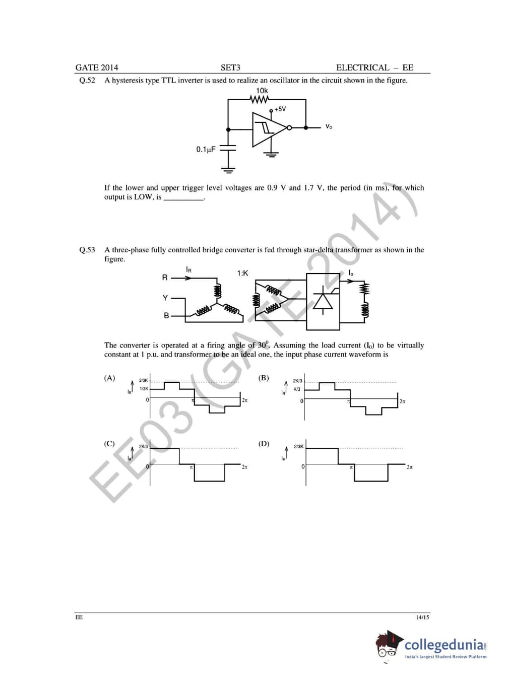 GATE 2014 Electrical Engineering (EE)- Slot 3 Question Paper with Answer Key PDF -Afternoon Session