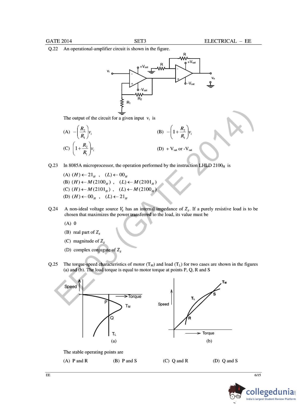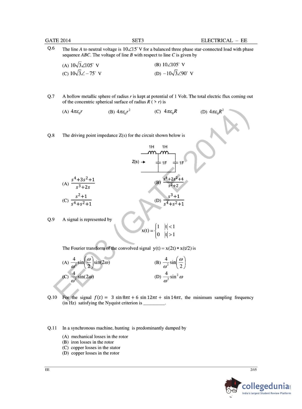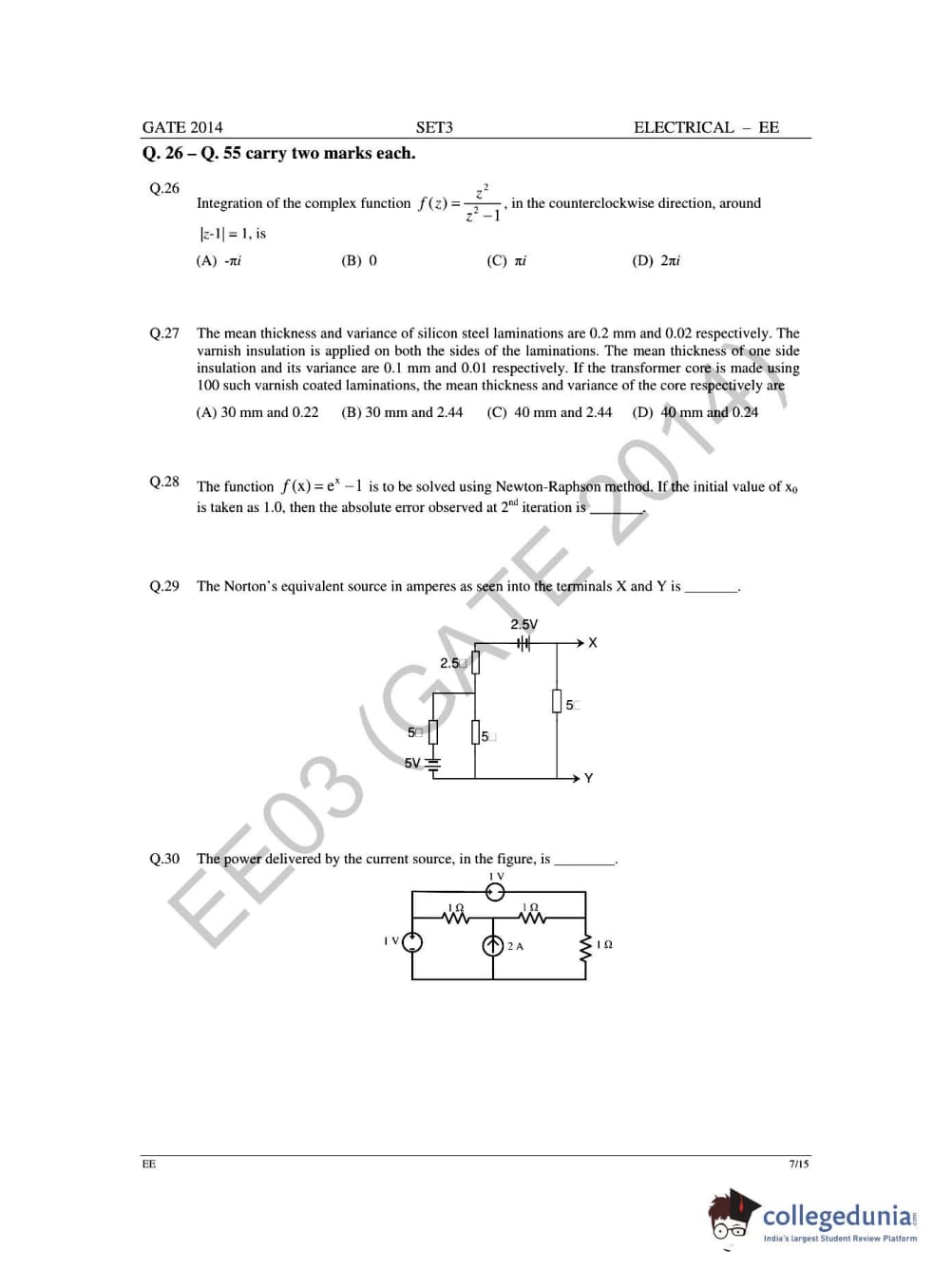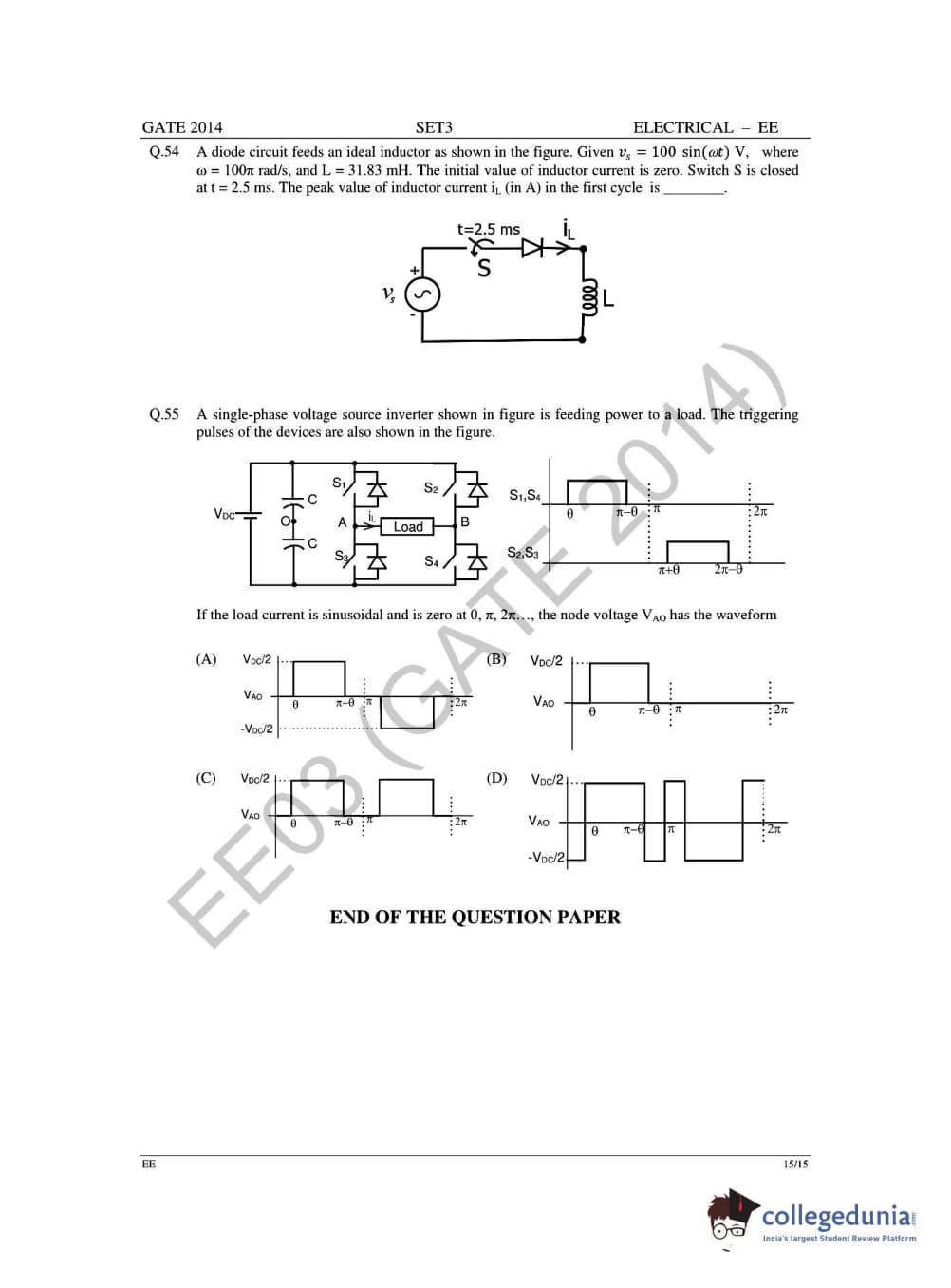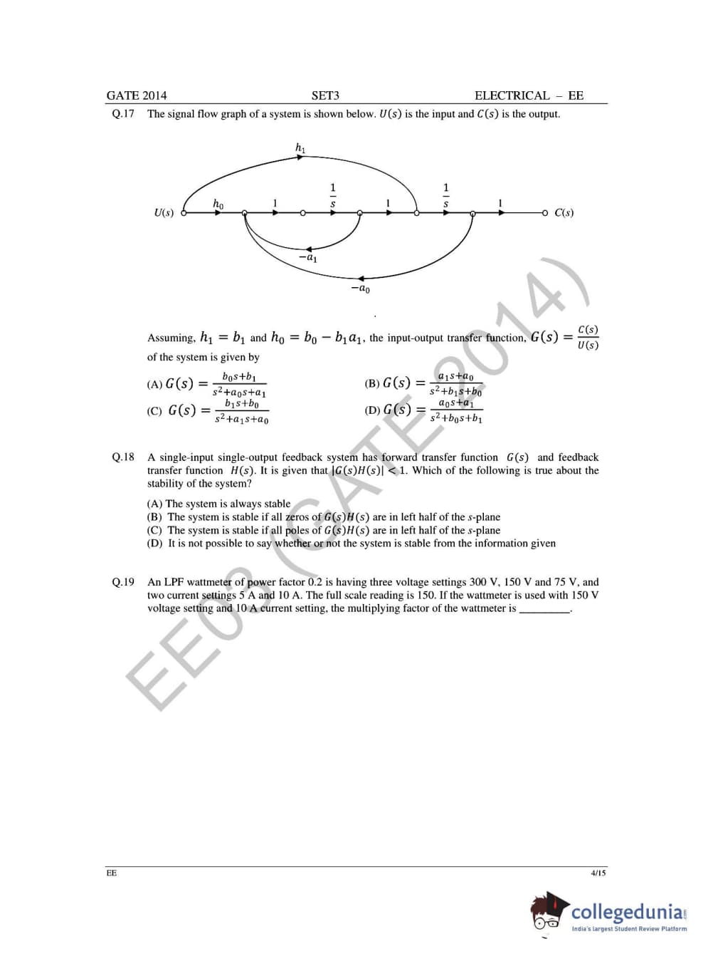 GATE 2014 Electrical Engineering (EE)- Slot 3 Question Paper with Answer Key PDF -Afternoon Session