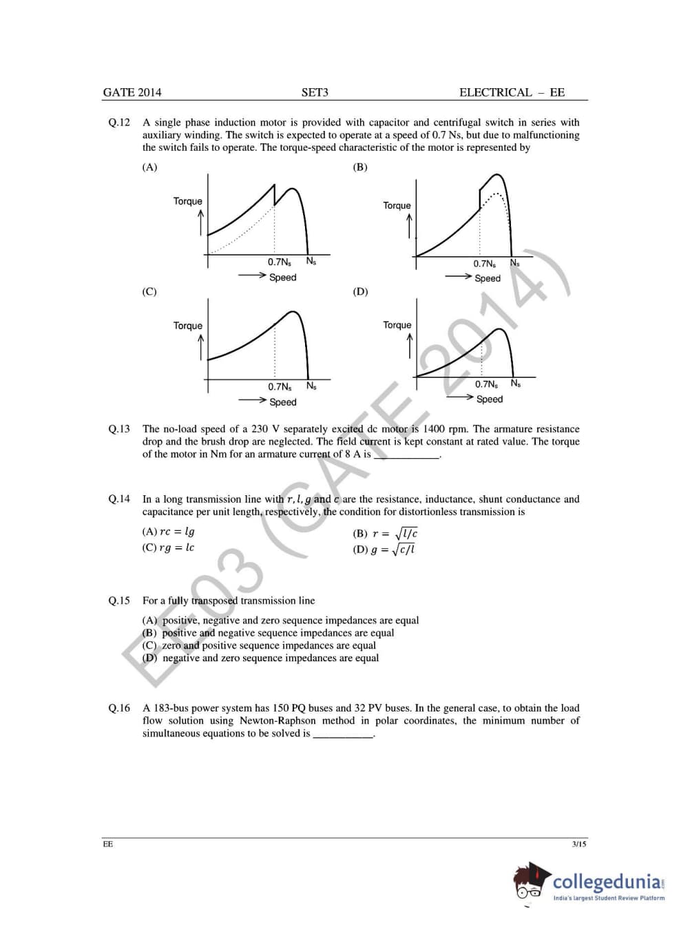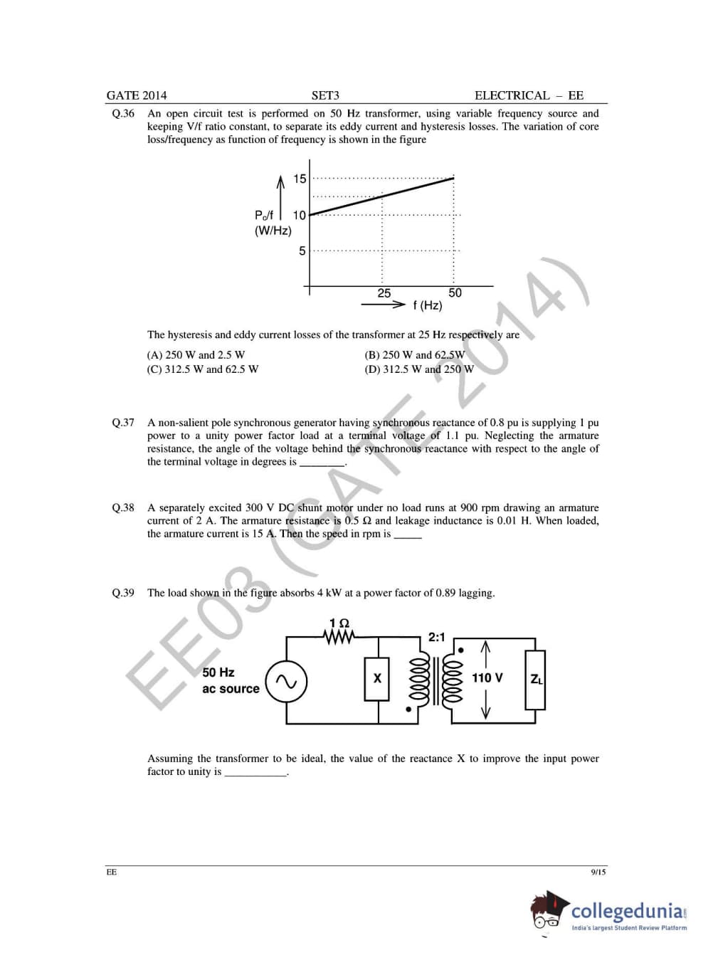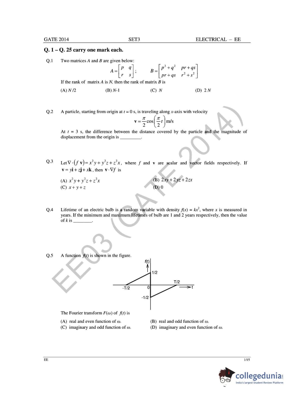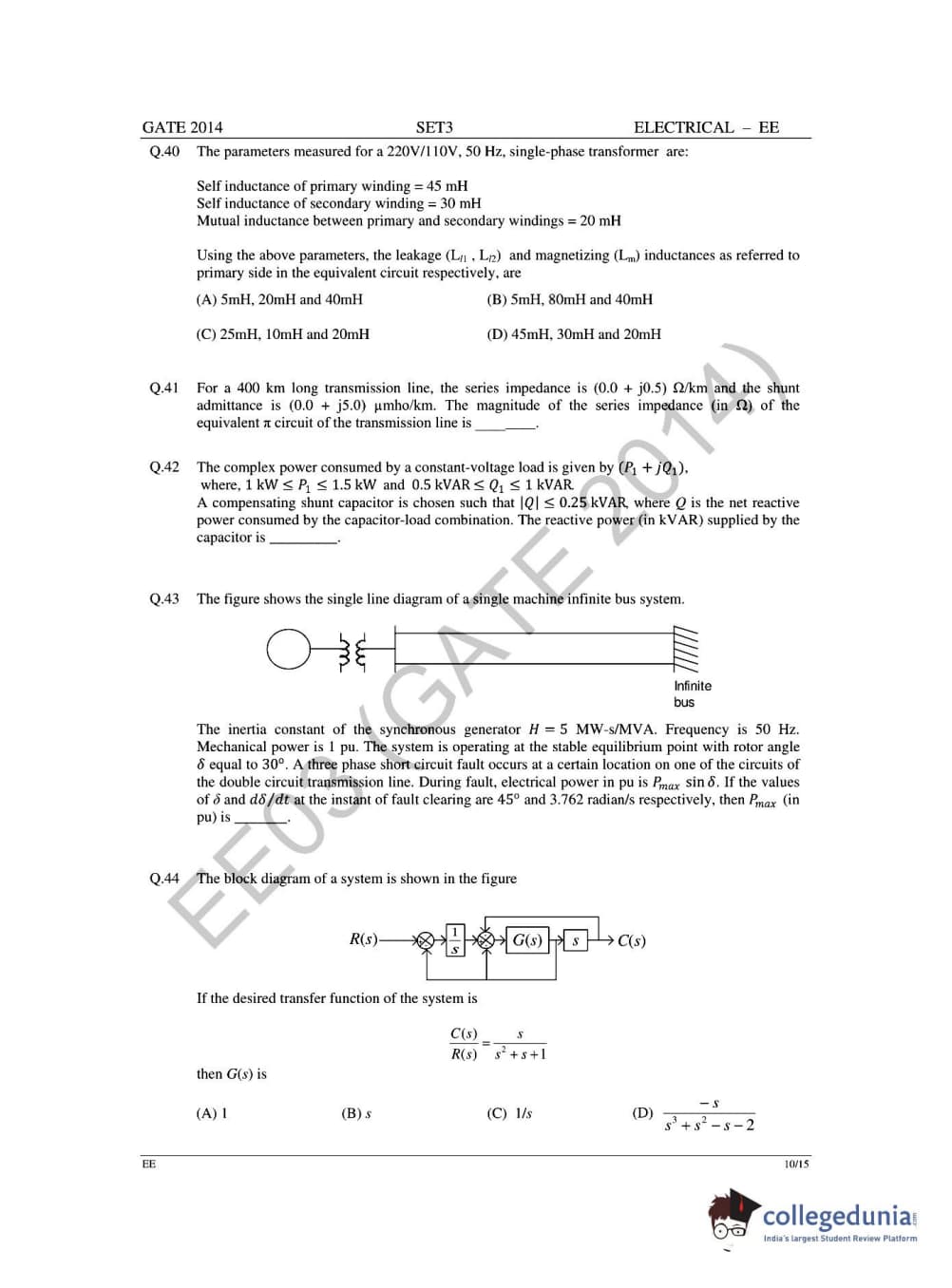 GATE 2014 Electrical Engineering (EE)- Slot 3 Question Paper with Answer Key PDF -Afternoon Session