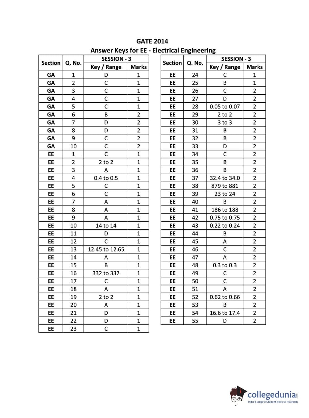 | GATE 2014 Electrical Engineering (EE)- Slot 3 Question Paper PDF | GATE 2014 Electrical Engineering (EE)- Slot 3 Answer Key PDF |