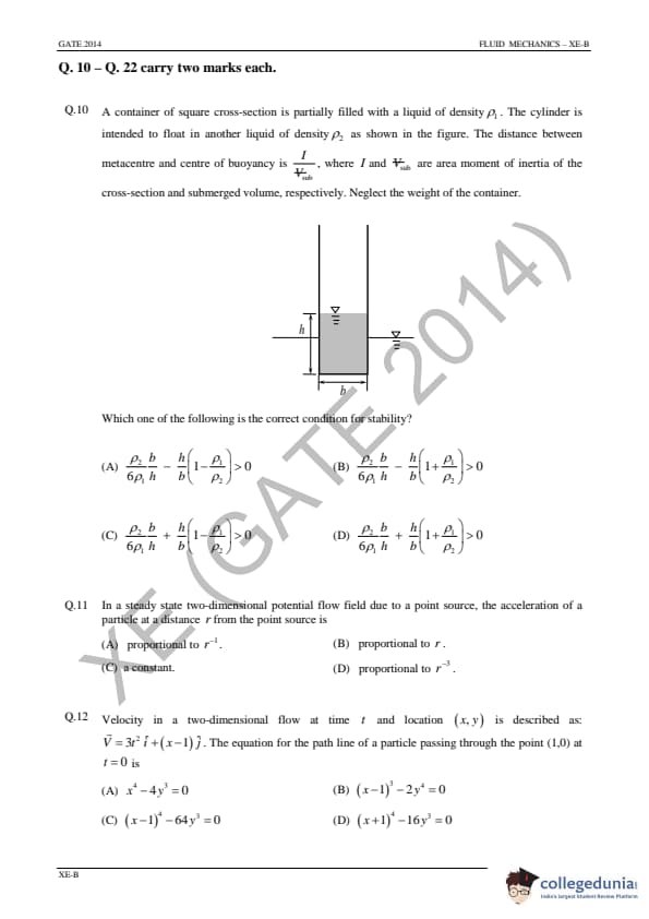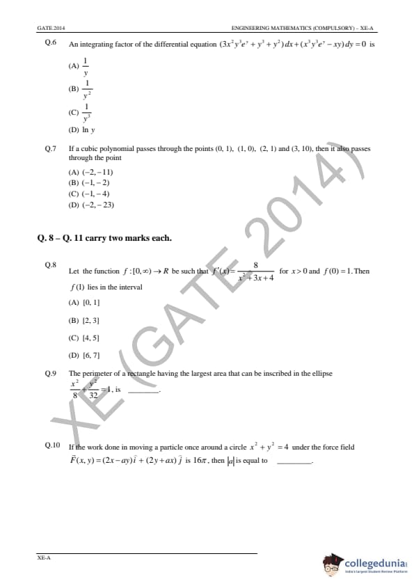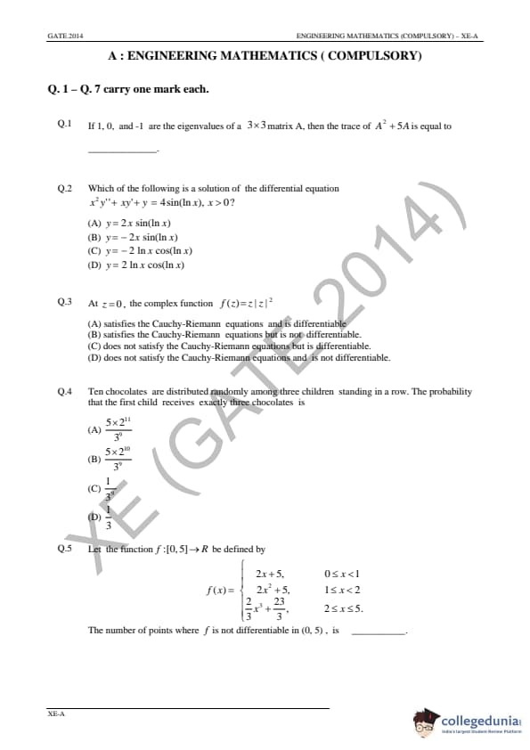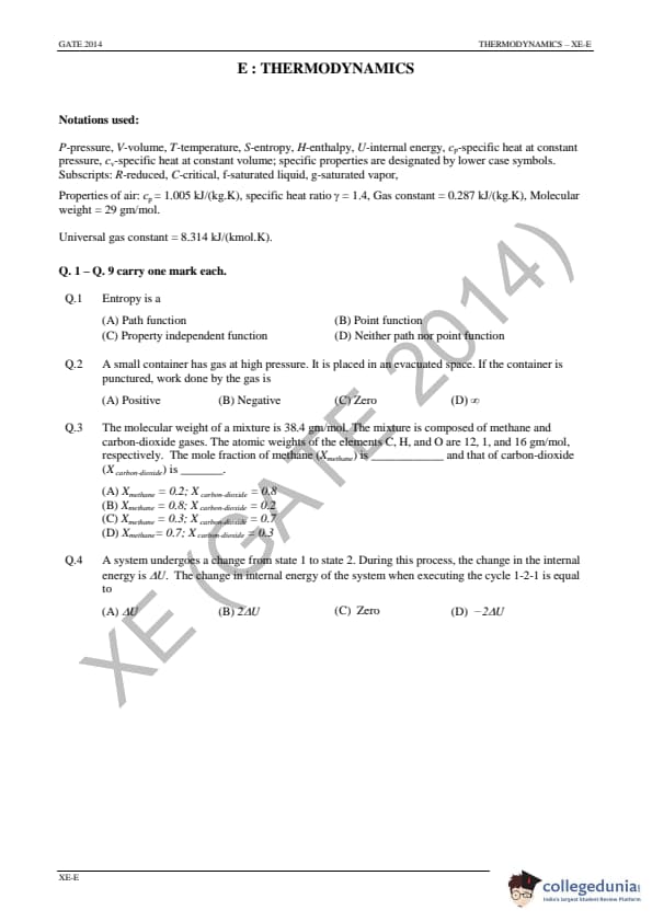 GATE 2014 Engineering Sciences (XE) Question Paper and Answer Key PDFs are available for download.GATE 2014 Engineering Sciences (XE) was conducted by the Indian Institute of Technology, Kharagpur on February 2, 2014 in the Forenoon session. GATE XE Question Paper consisted of 65 questions and the total marks for the exam were 100. The question paper of GATE XE 2014 consisted of 49 Multiple Type Questions(MCQ) and 16 Numerical Answer Type (NAT) Questions. Candidates rated the overall difficulty level fo GATE XE Paper as moderate.