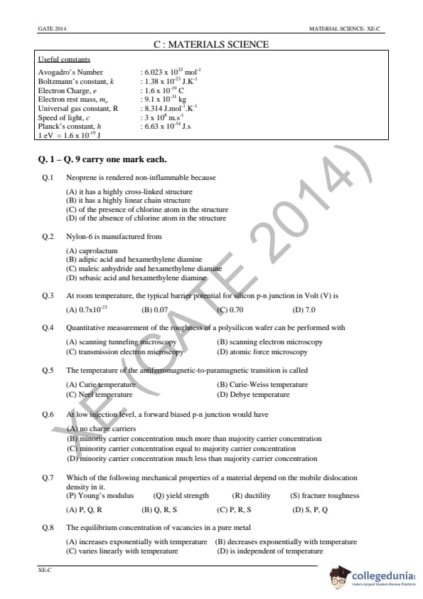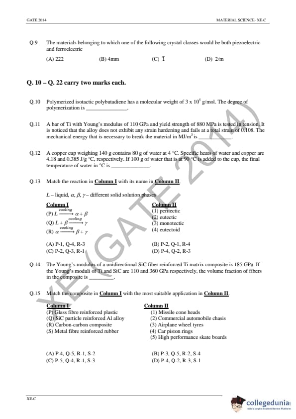 - The Material Science Section had ten 1 marks and five 2 marks on MCQ questions with nine 2 marks on NAT Questions.