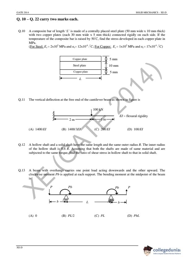 - The Solid Mechanics section had six 1 marks and nine 2 marks MCQ questions. this section was also having NAT Questions.