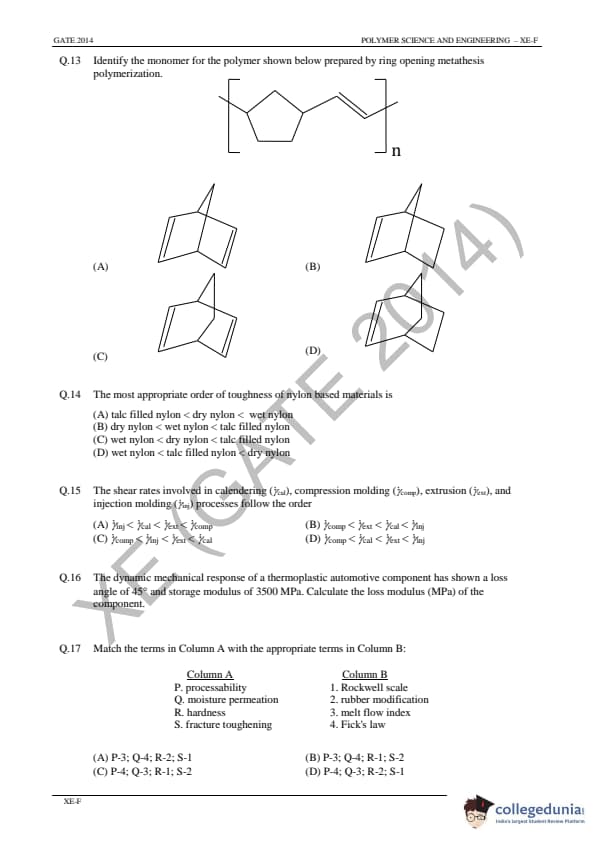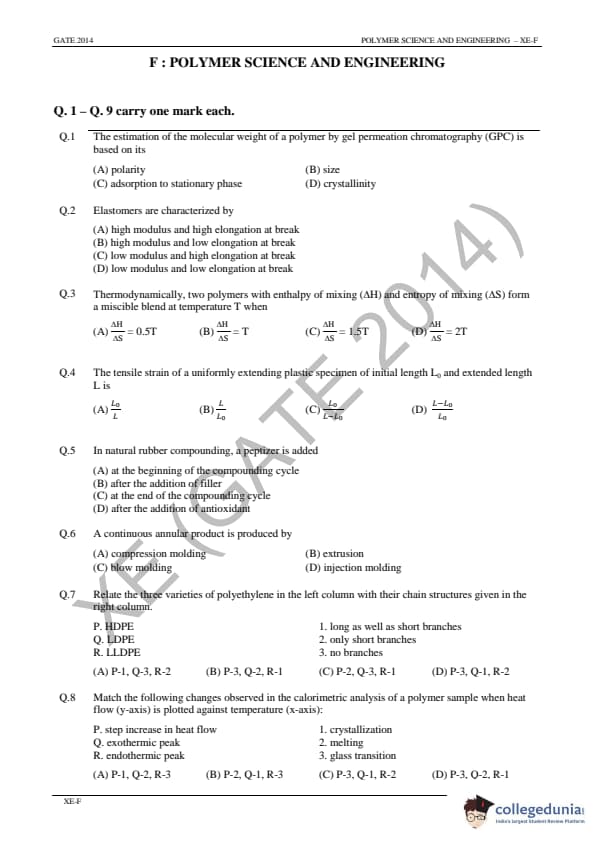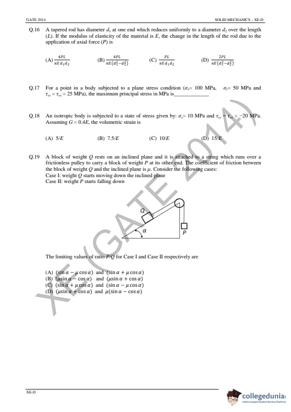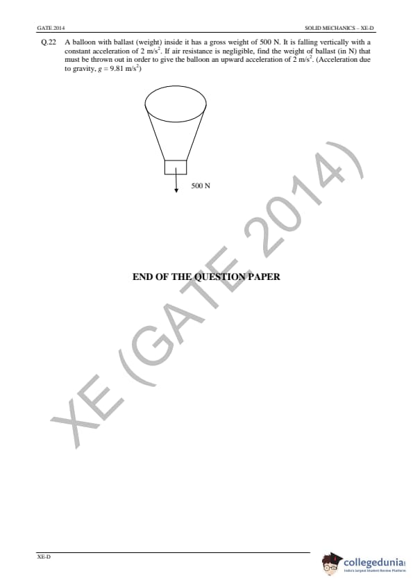 | GATE 2014 Engineering Sciences (XE) Question Paper | GATE 2014 Engineering Sciences (XE) Answer Key |