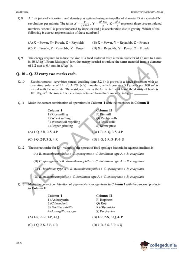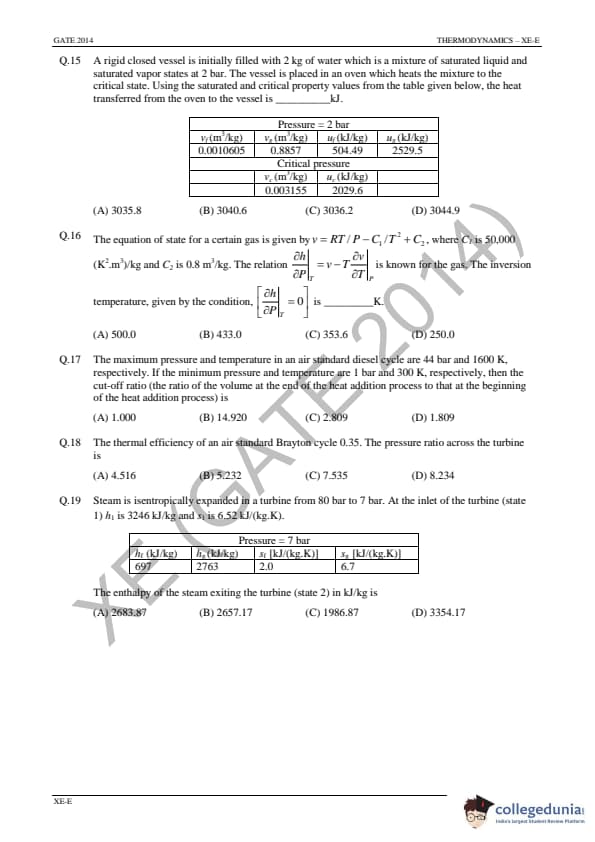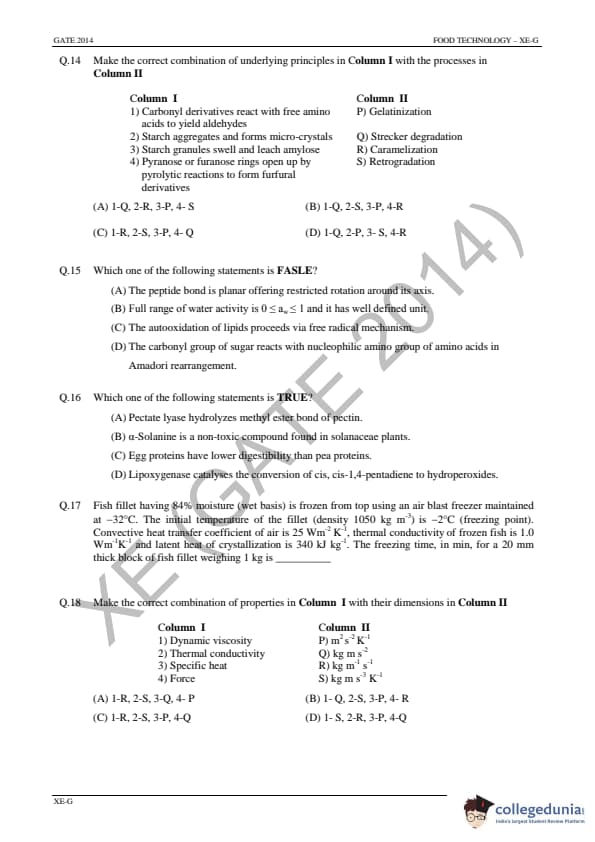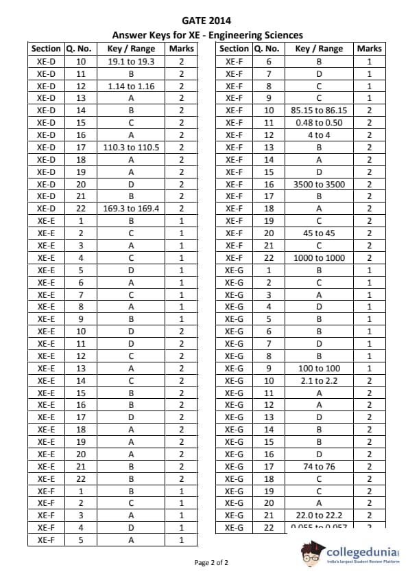 GATE 2014 XE Answer Key Details