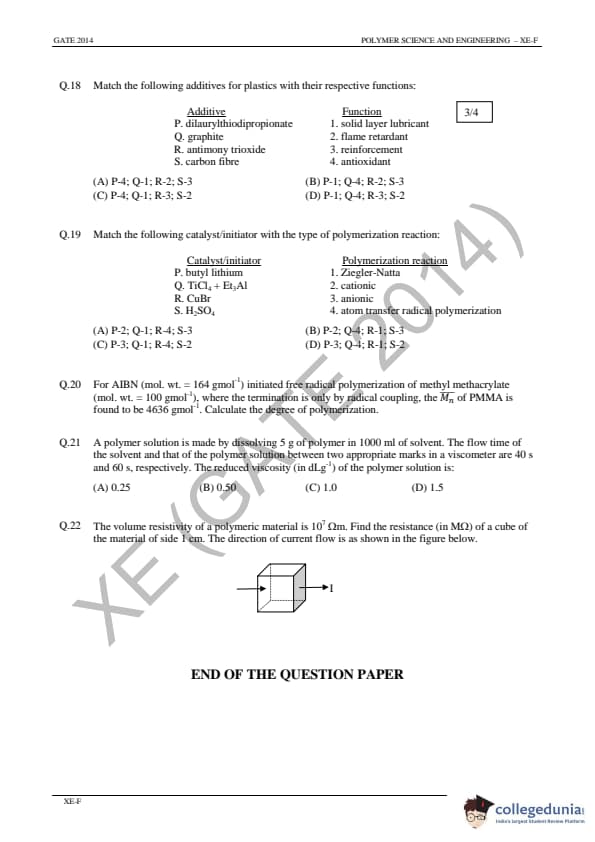 GATE 2014 Engineering Sciences (XE) Question Paper with Answer Key PDFs (February 2- Afternoon Session)