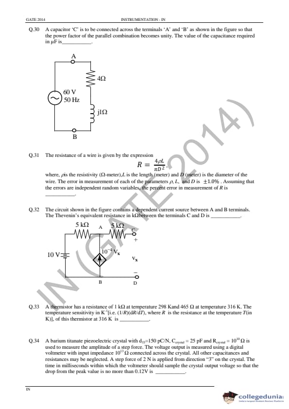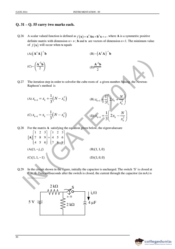 GATE 2014 IN Question Paper with Answer Key PDFs - February 02, 2014 (Afternoon Session)