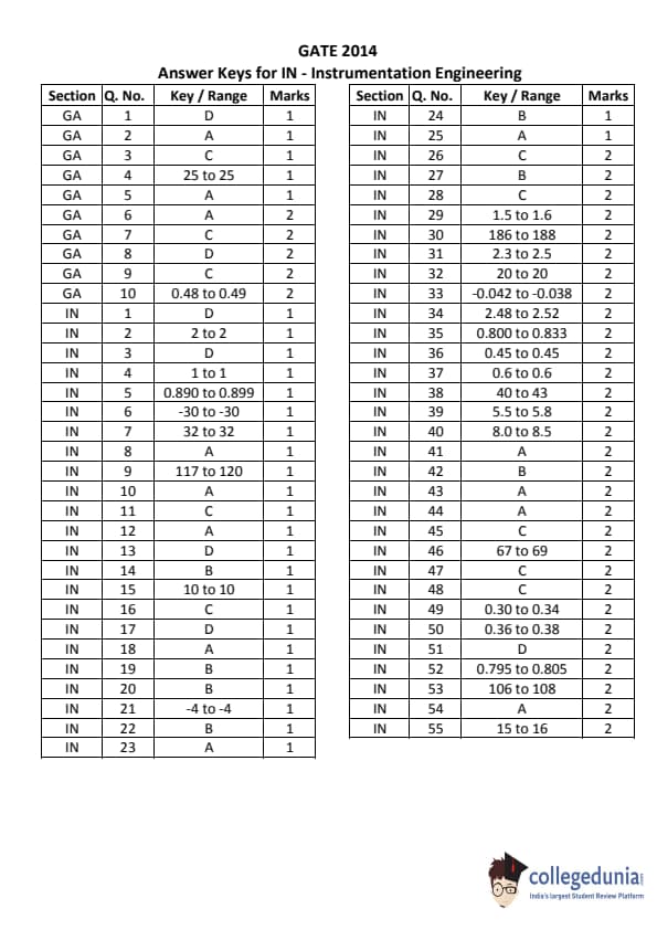 GATE 2014 IN Answer Key Details