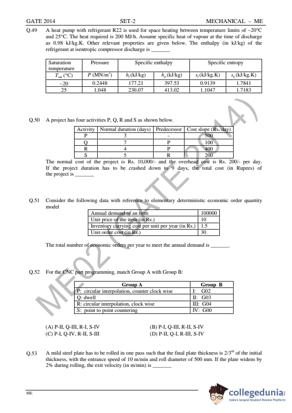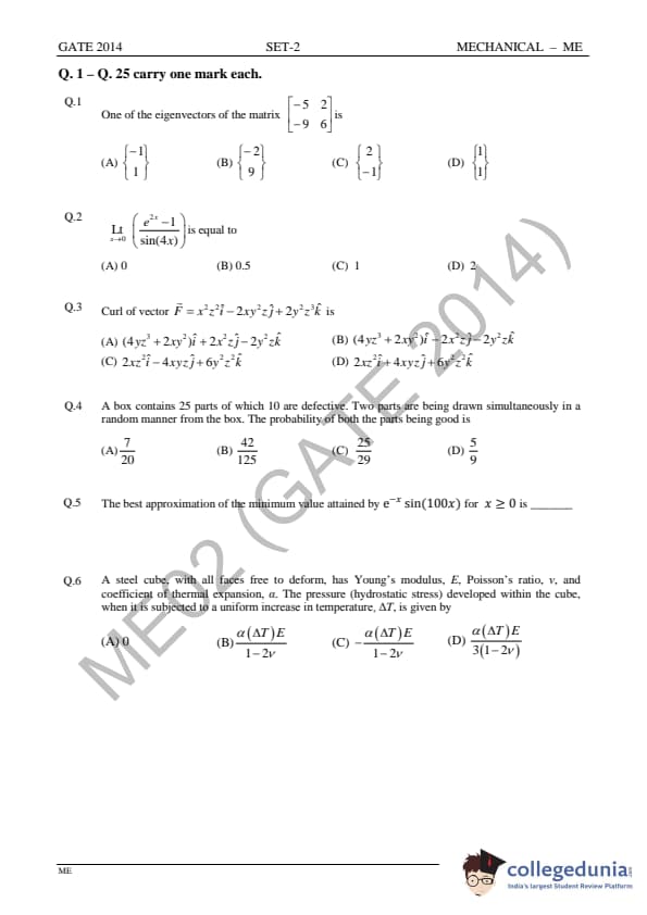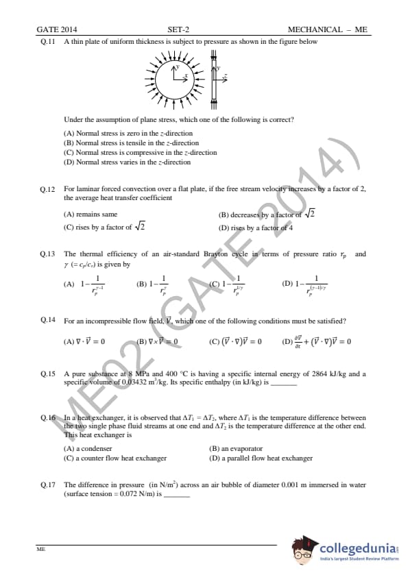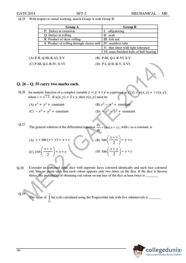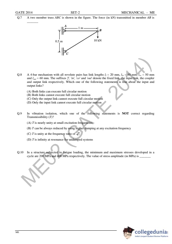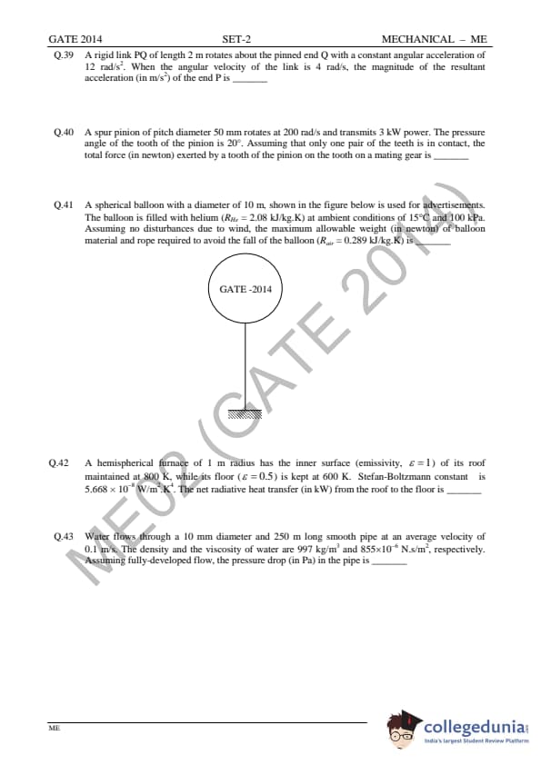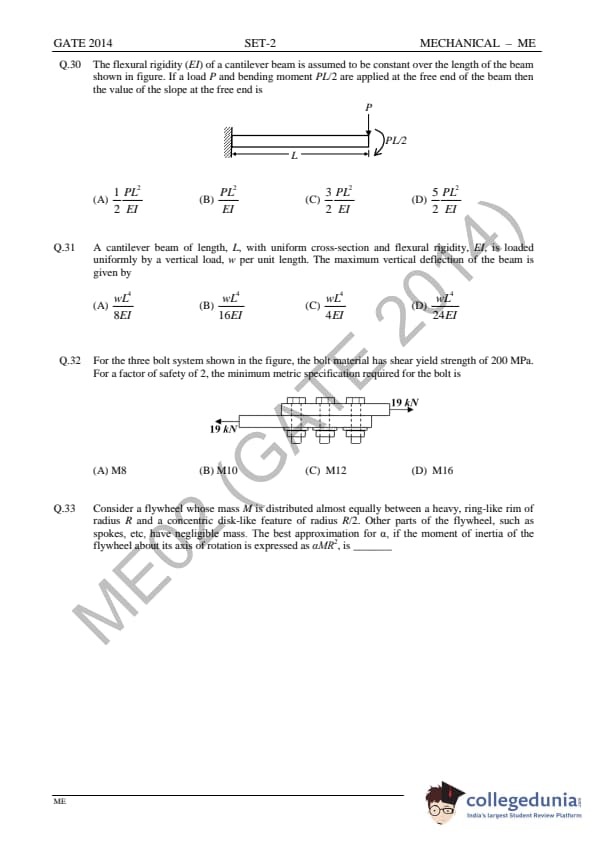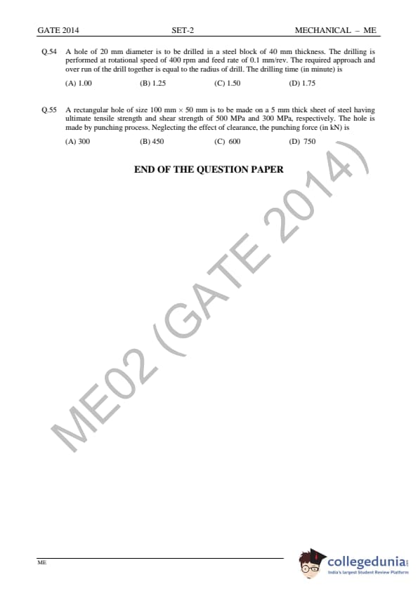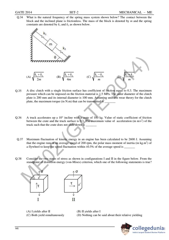 GATE 2014 ME Question Paper with Answer Key PDFs Slot 2 - February 15, 2014 (Afternoon Session)