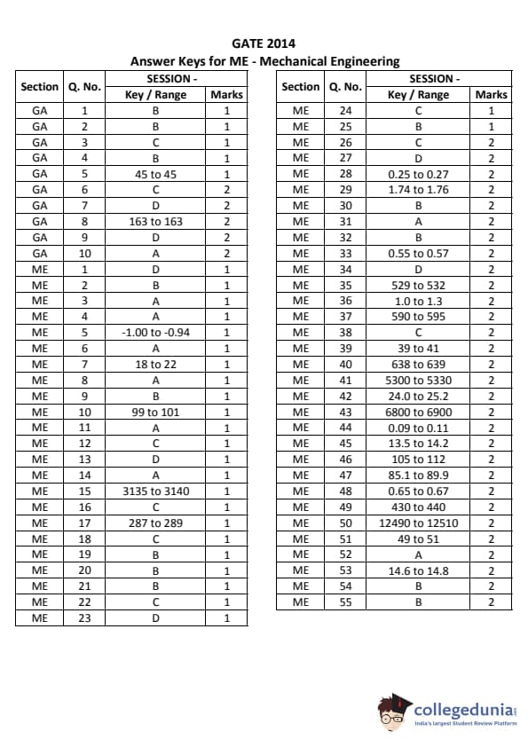 GATE 2014 ME Answer Key Details