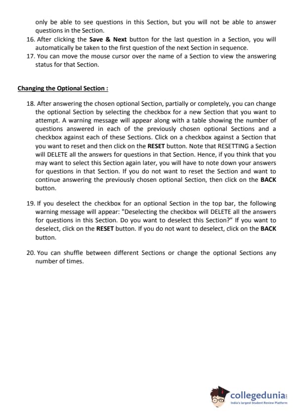 Different types of questions and their marking scheme are tabulated below: