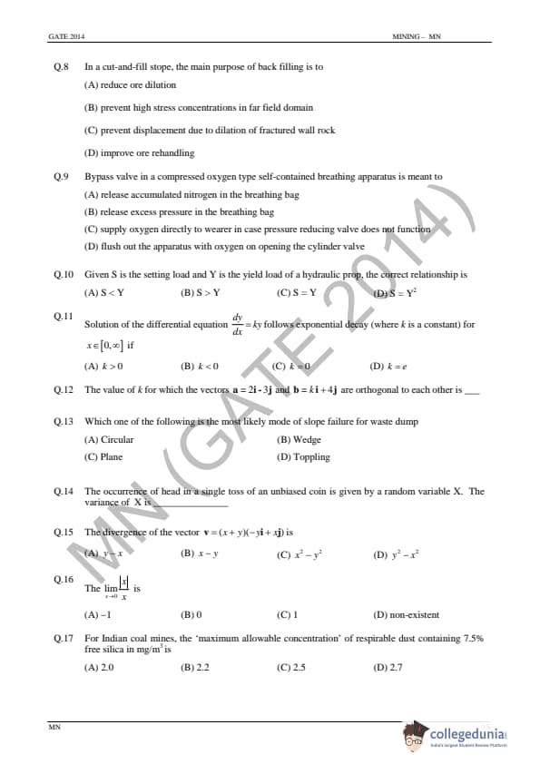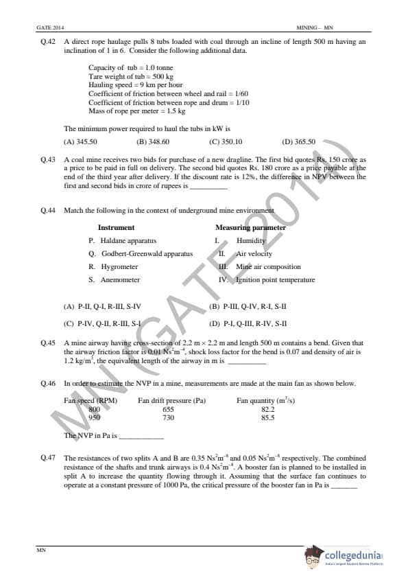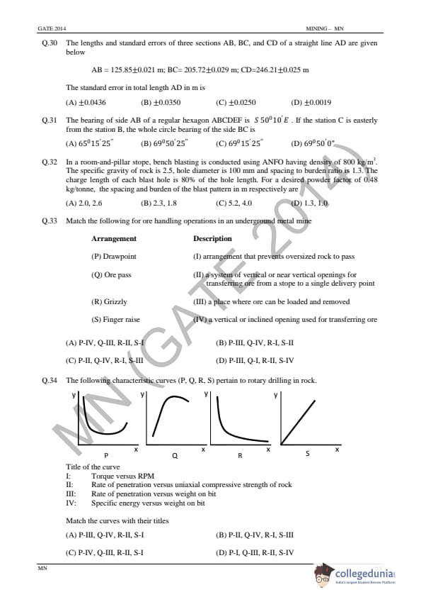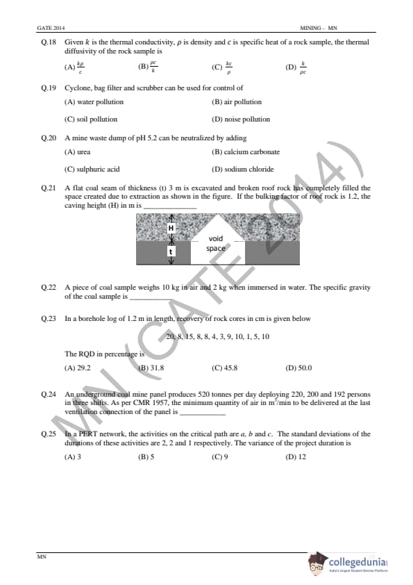 GATE 2014 Mining Engineering (MN) Question Paper with Answer Key PDFs (February 2 - Afternoon Session)
