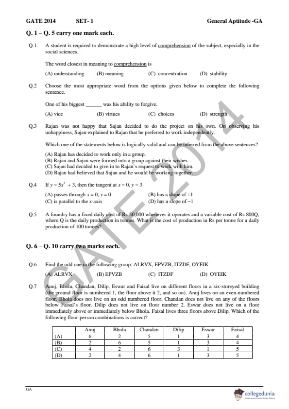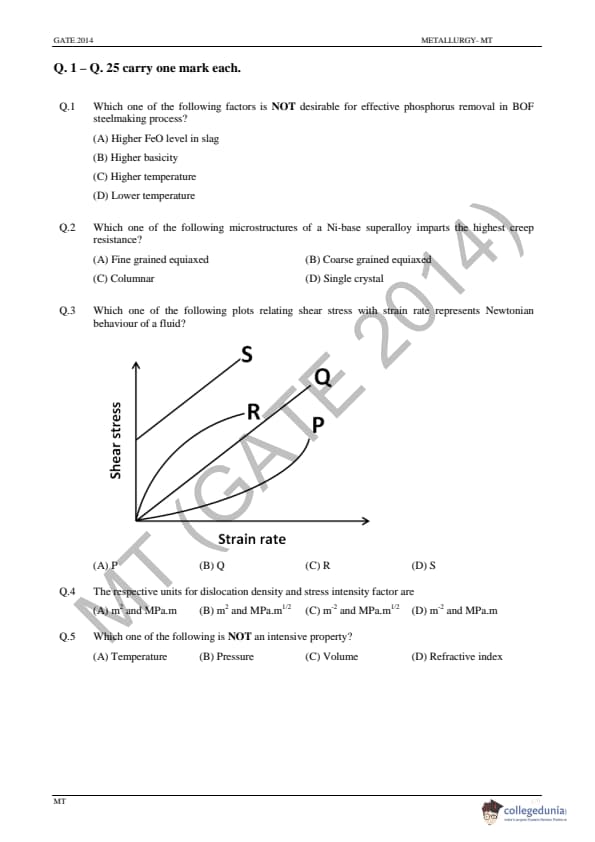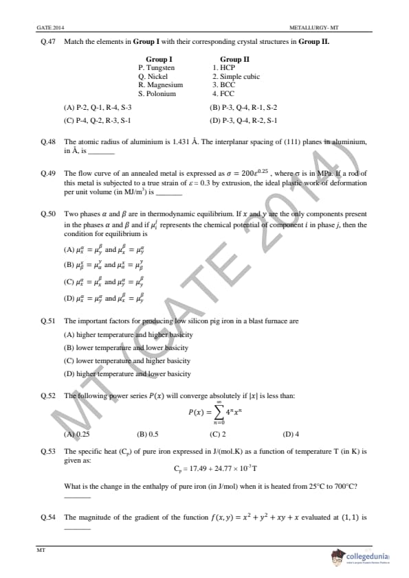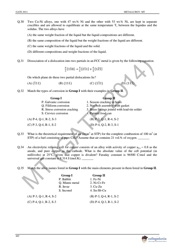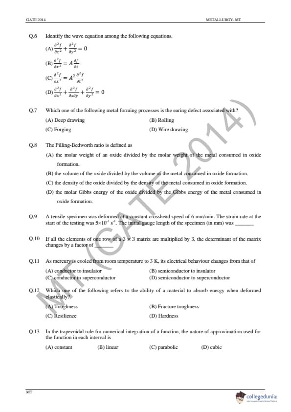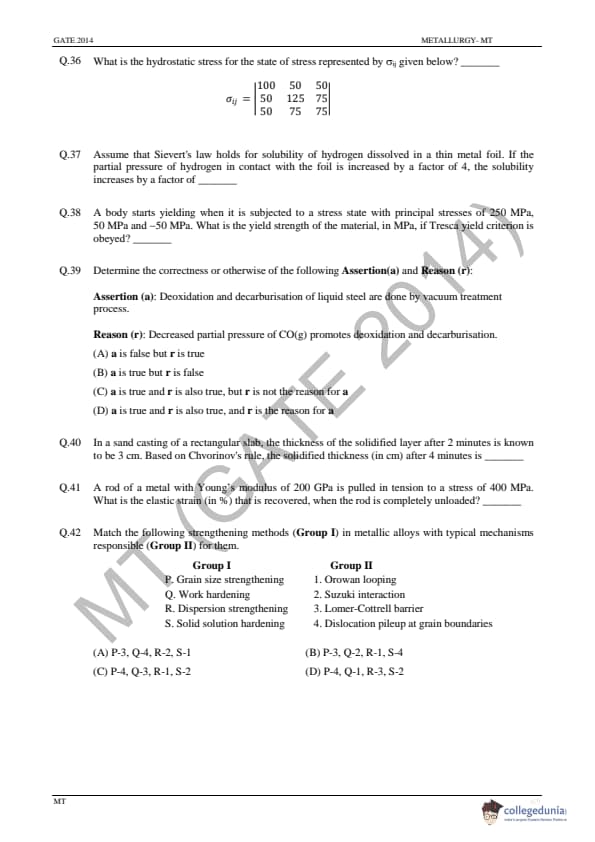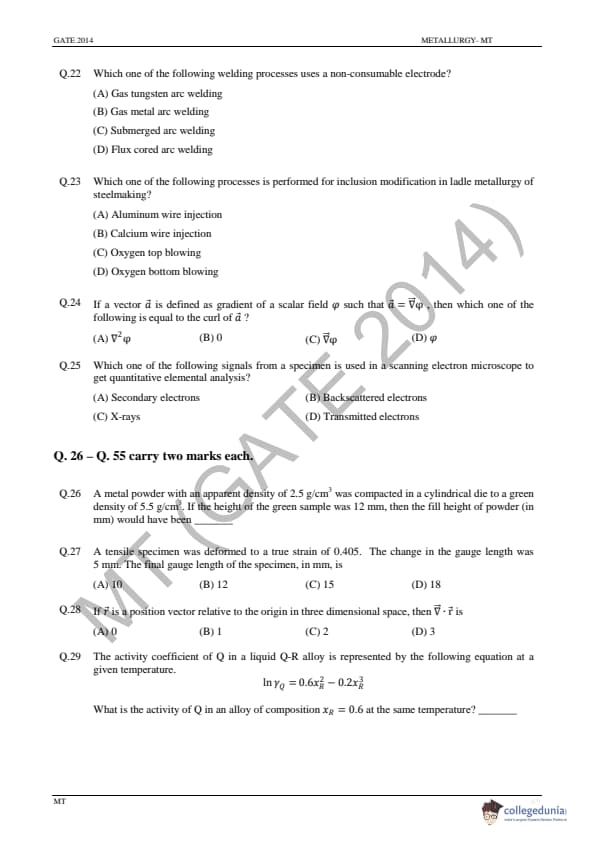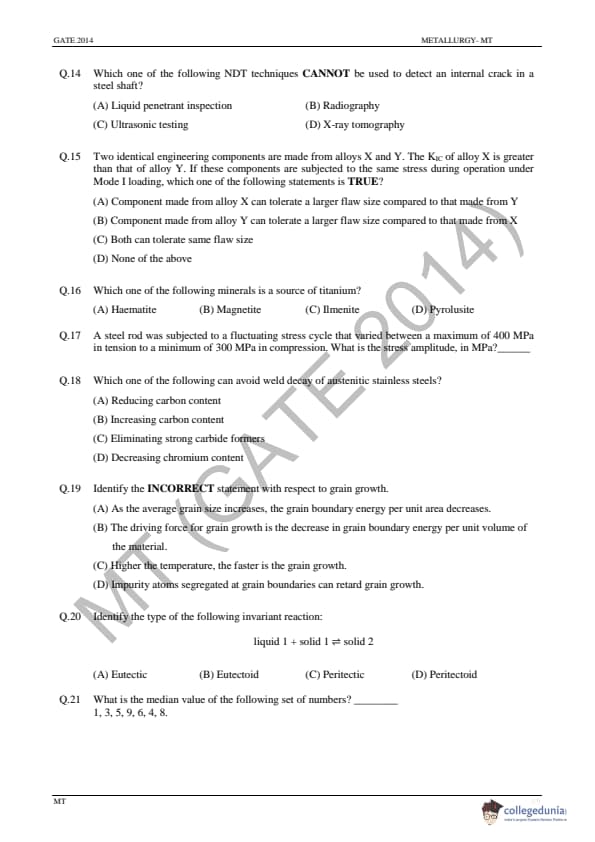 GATE 2014 Metallurgical Engineering (MT) Question Papers with Answer Key PDFs ( February 2 - Forenoon Session)