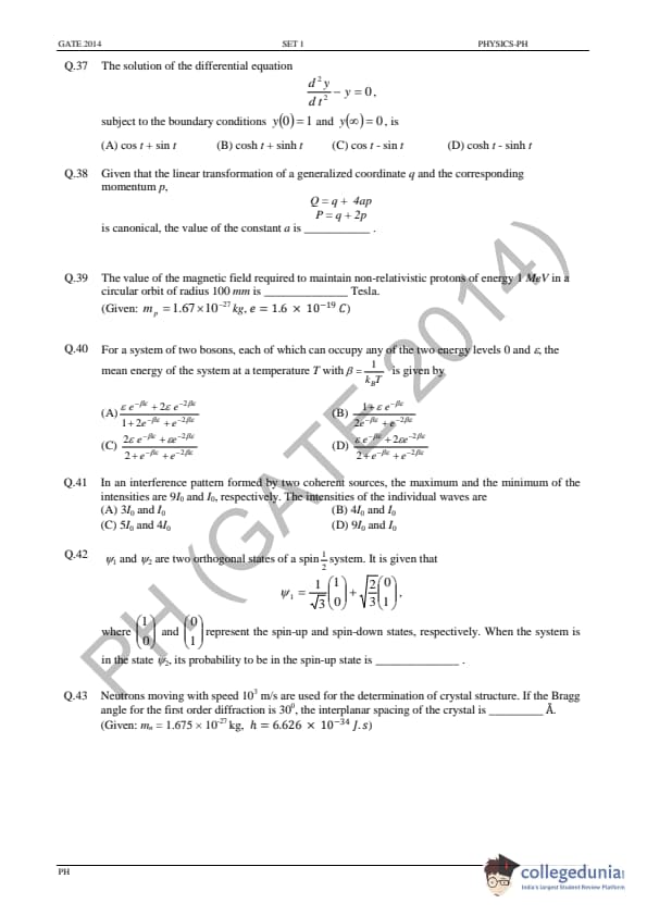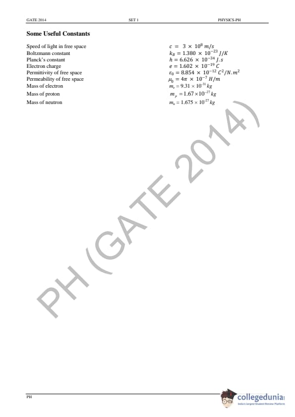 GATE 2014 Physics (PH) Question Paper with Answer Key PDFs - (February 2 - Forenoon Session)