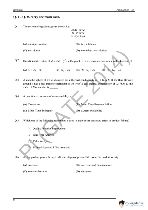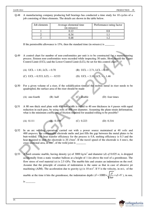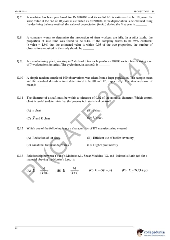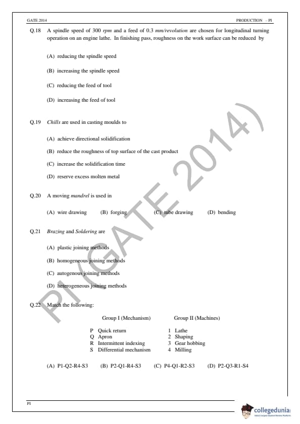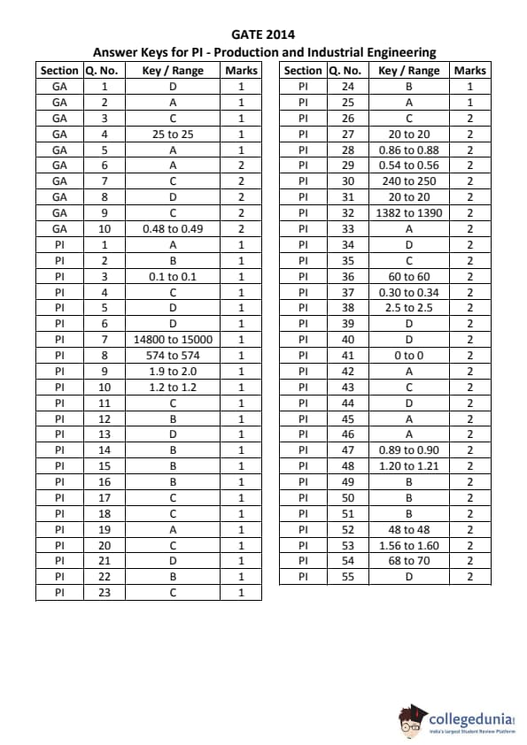 | GATE 2014 Production and Industrial Engineering (PI) Question Paper | GATE 2014 Production and Industrial Engineering (PI) Answer Key |