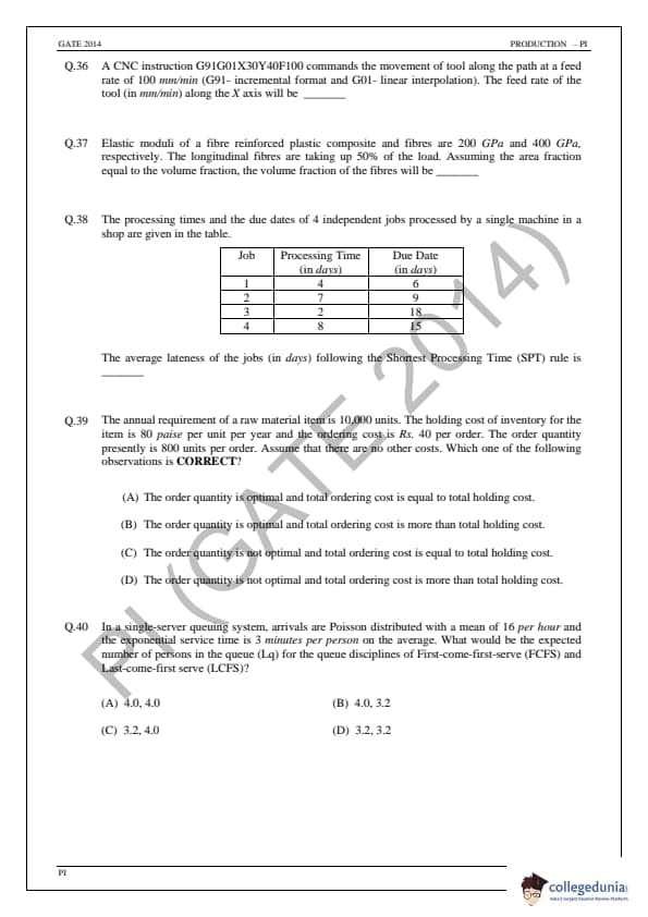 GATE 2014 Production and Industrial Engineering (PI) Question Papers with Answer Key PDFs (February 2-Afternoon Session)