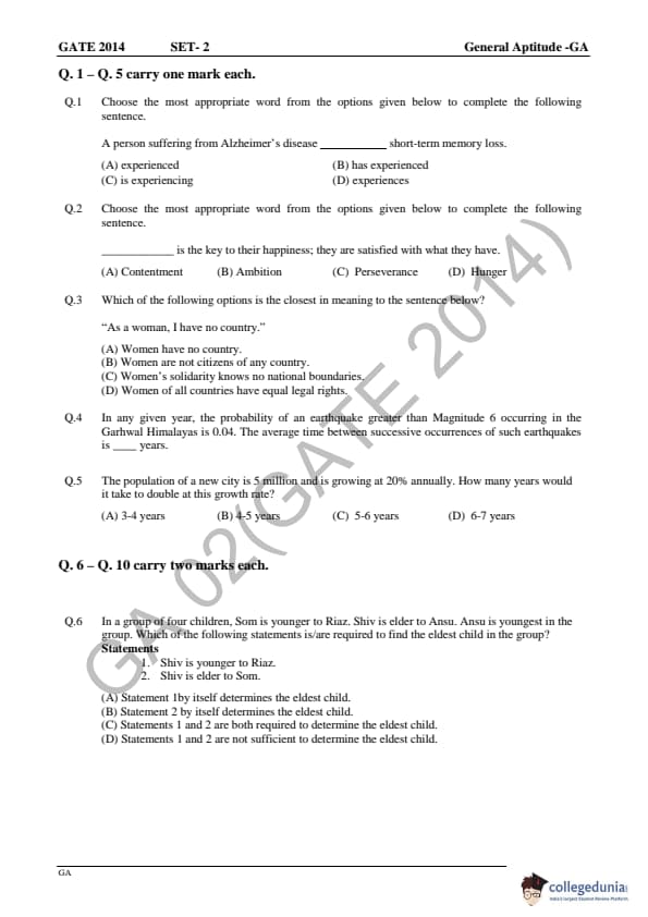 GATE Previous Year Question Papers: