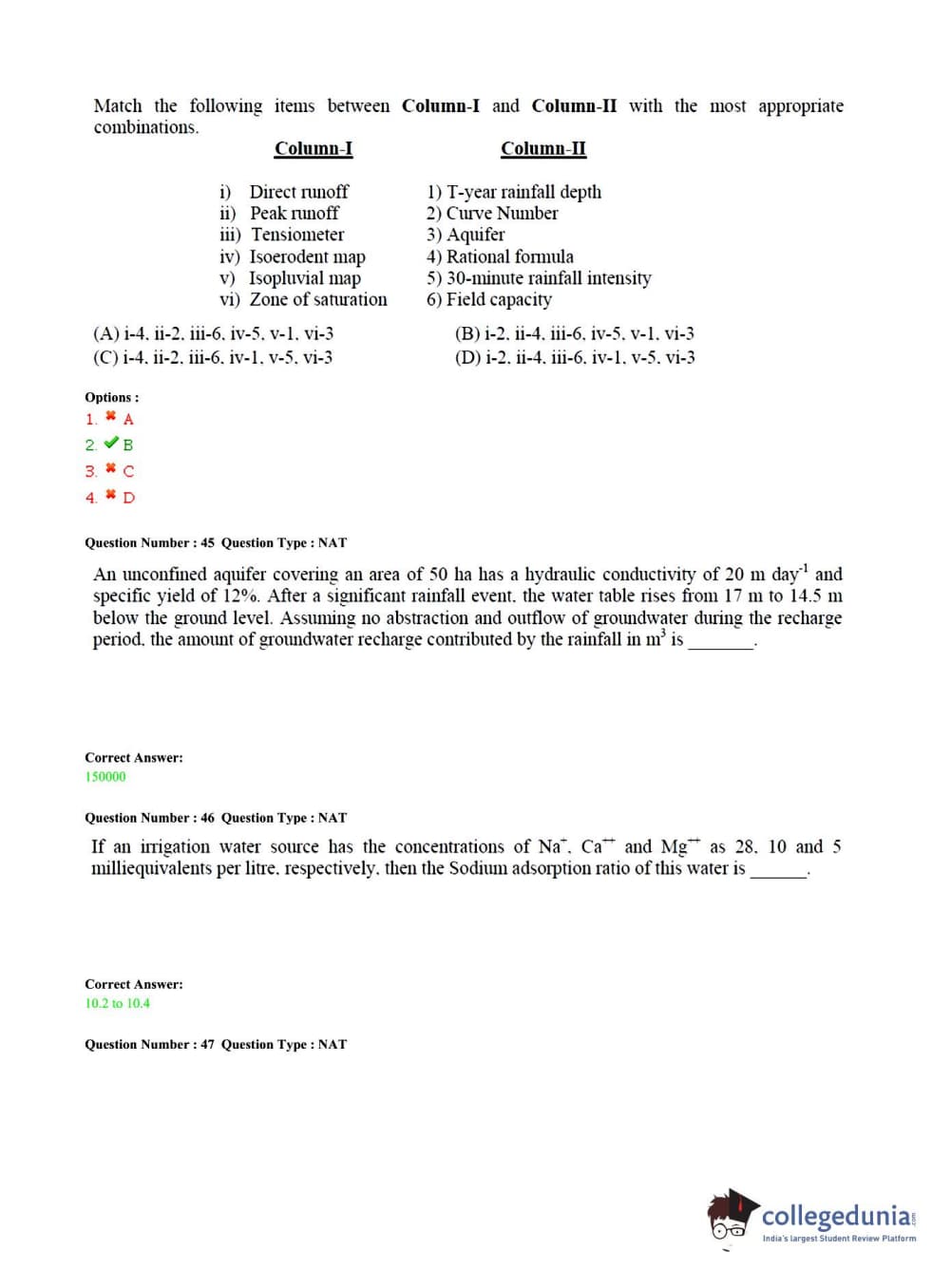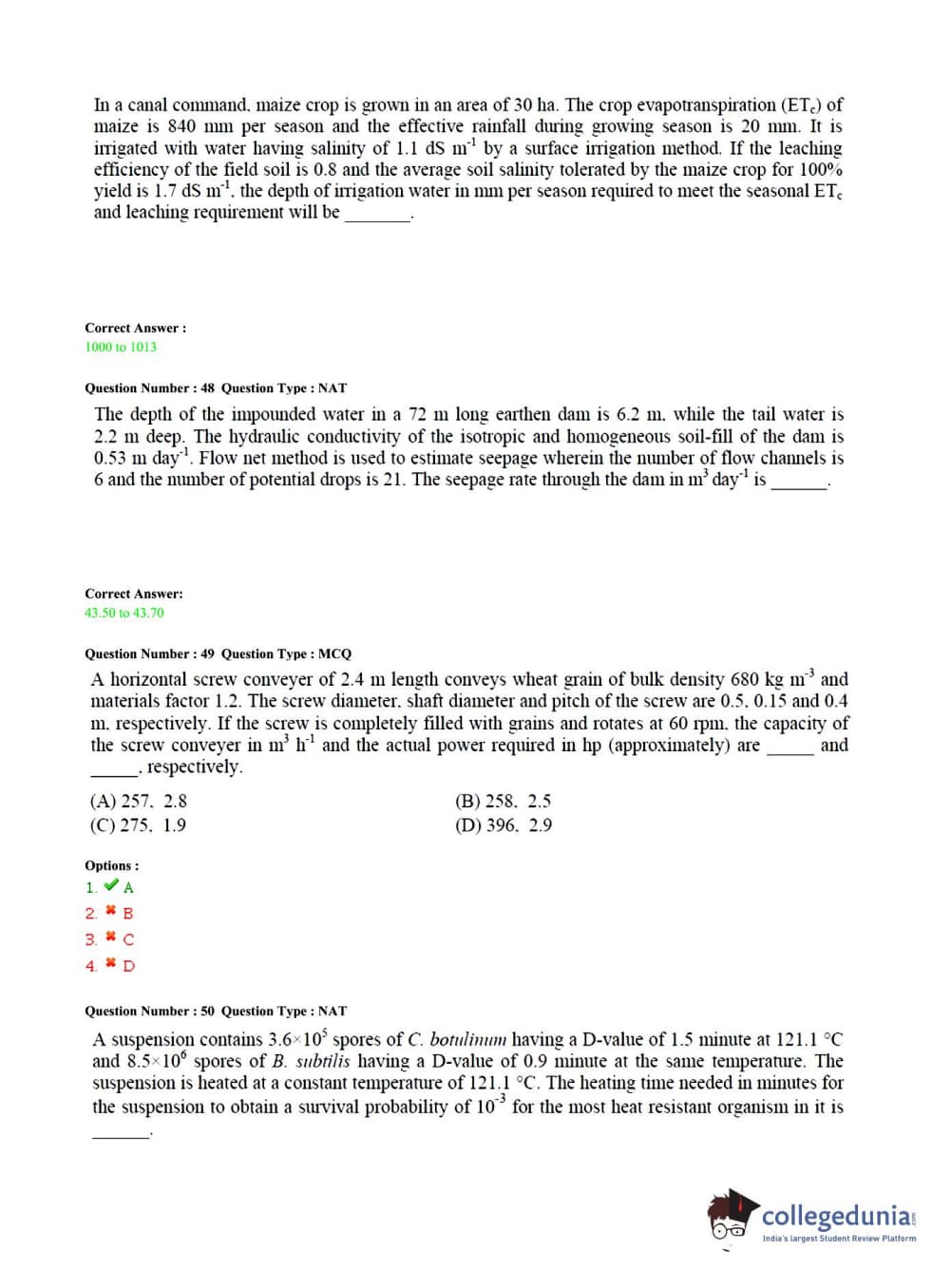 GATE 2015 Agricultural Engineering (AG) Paper Analysis