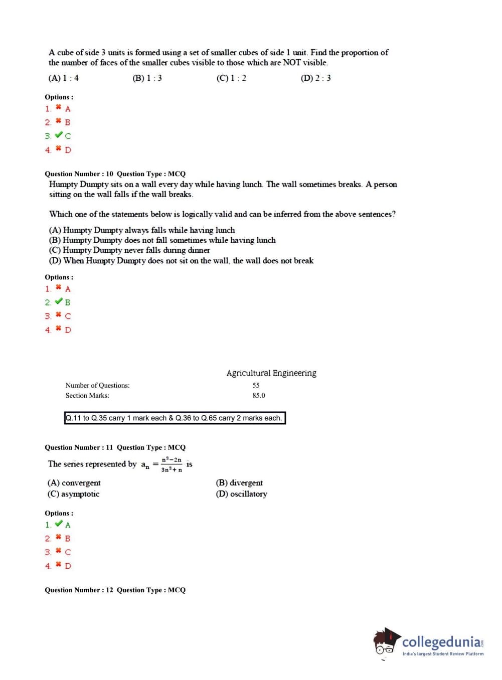 GATE 2015 Agricultural Engineering (AG) question paper has a total of 65 questions and the maximum mark is 100.
