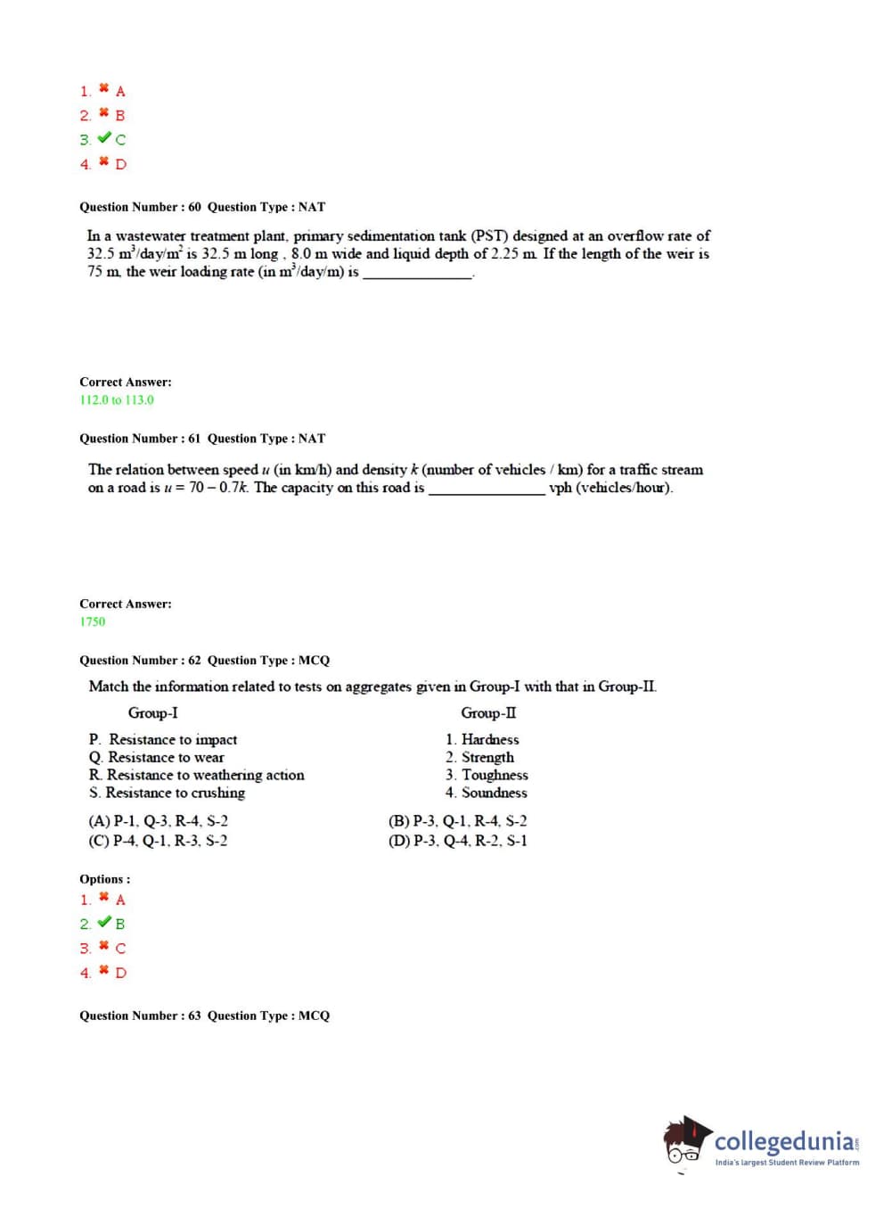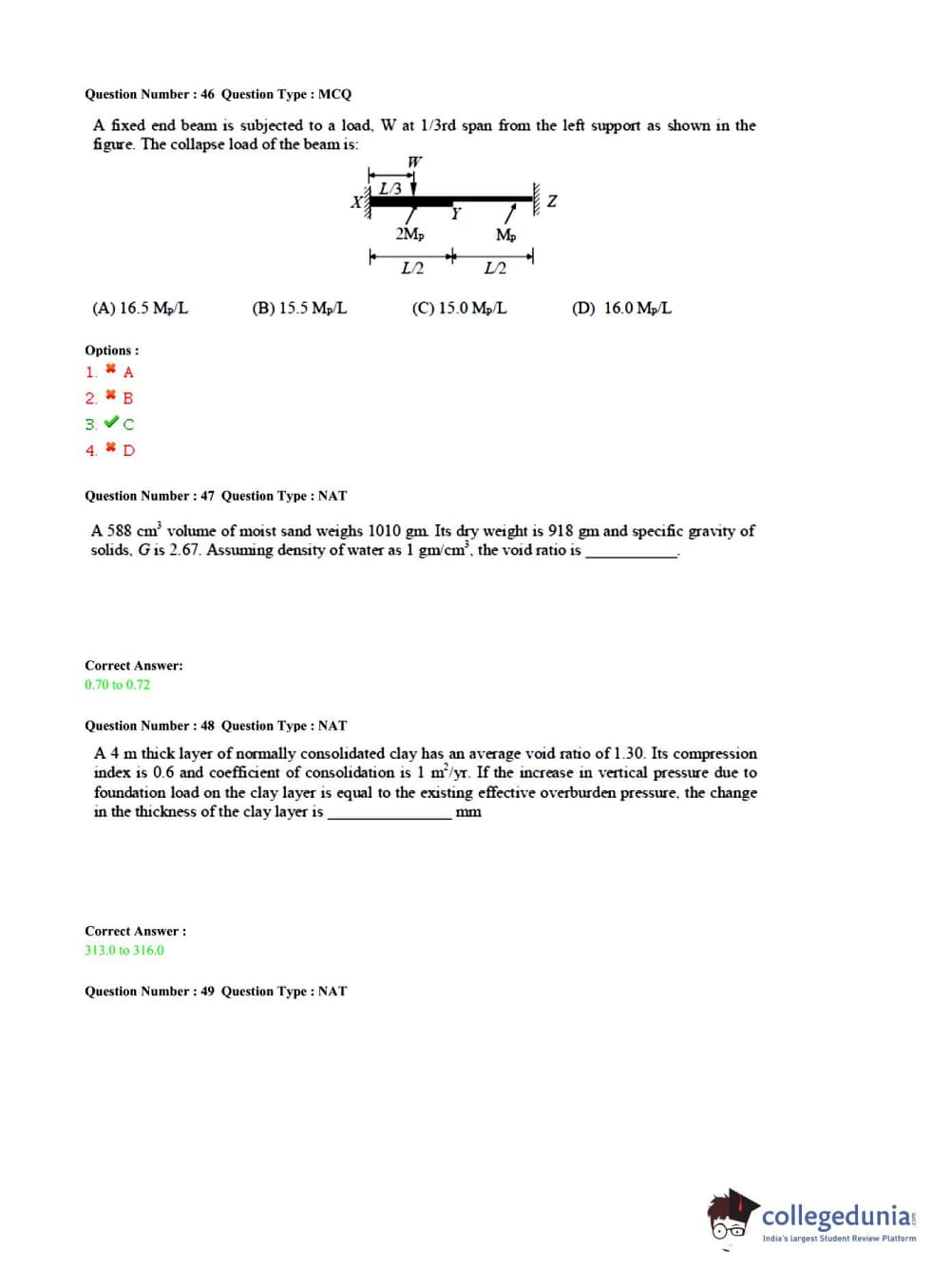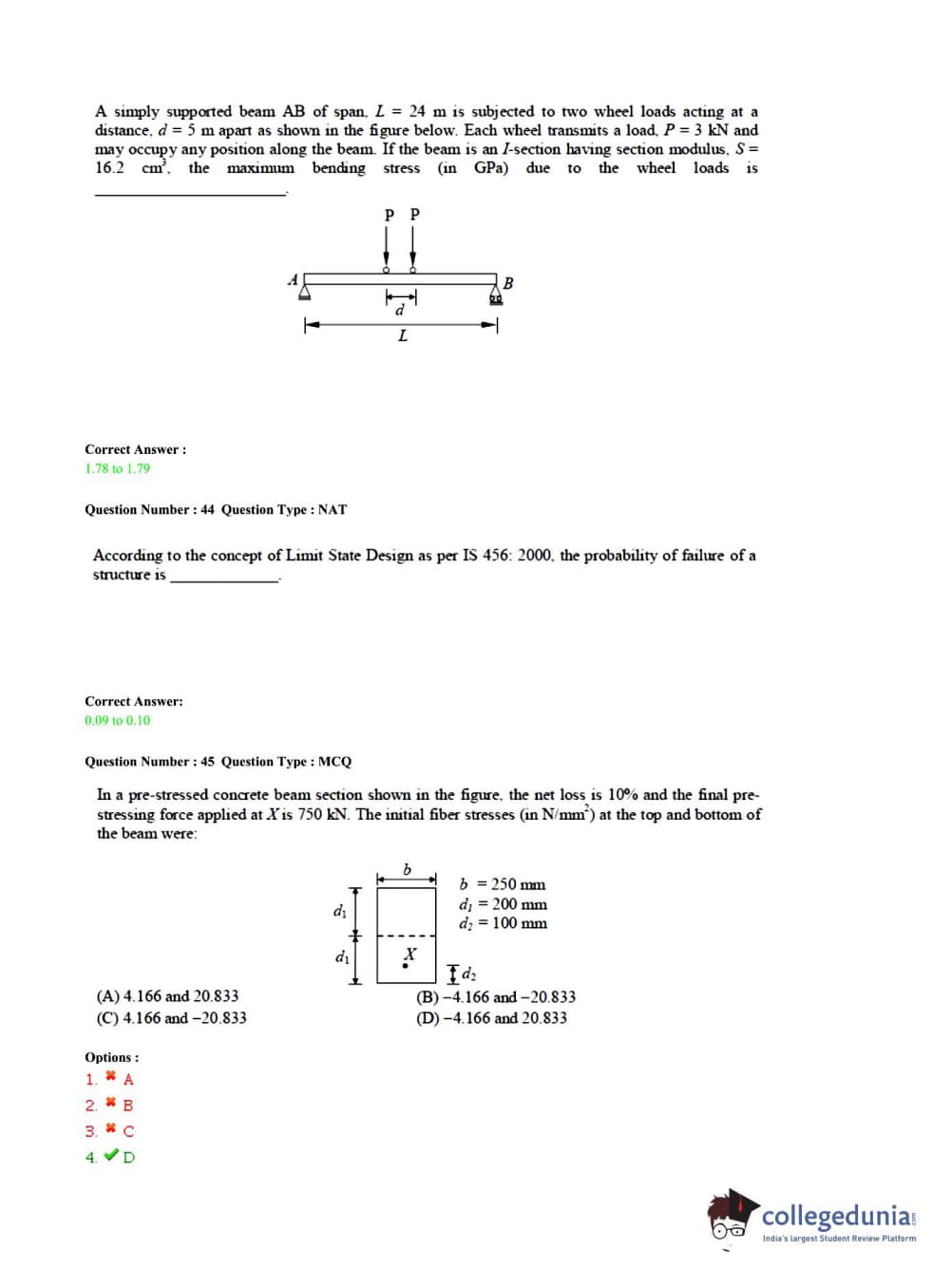 GATE 2015 CE Slot 2 Question Paper with Answer Key PDFs are available to download. GATE 2015 Civil Engineering (CE) Slot 2 paper was conducted by IIT Kanpur on February 8, 2015 in the afternoon session. GATE 2015 CS paper has 65 questions, which include questions related to General Aptitude, Mathematics, and Civil Engineering. The exam was od 3-hour duration with a total of 100 marks. The questions in GATE CE 2015 slot 2 have both Multiple Type Questions(MCQ) and Numerical Answer Type (NAT) Questions. In GATE CE 2015, the question paper has 1 and 2 marks questions, for every incorrect answer marks were deducted respectively. The General Aptitude Section of the Question paper has a total of 10 questions and there were 55 questions related to Civil Engineering. The overall difficulty level of the exam was moderate.