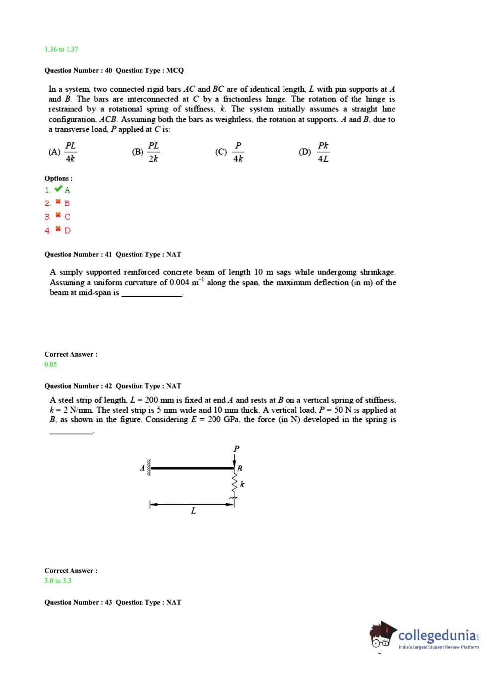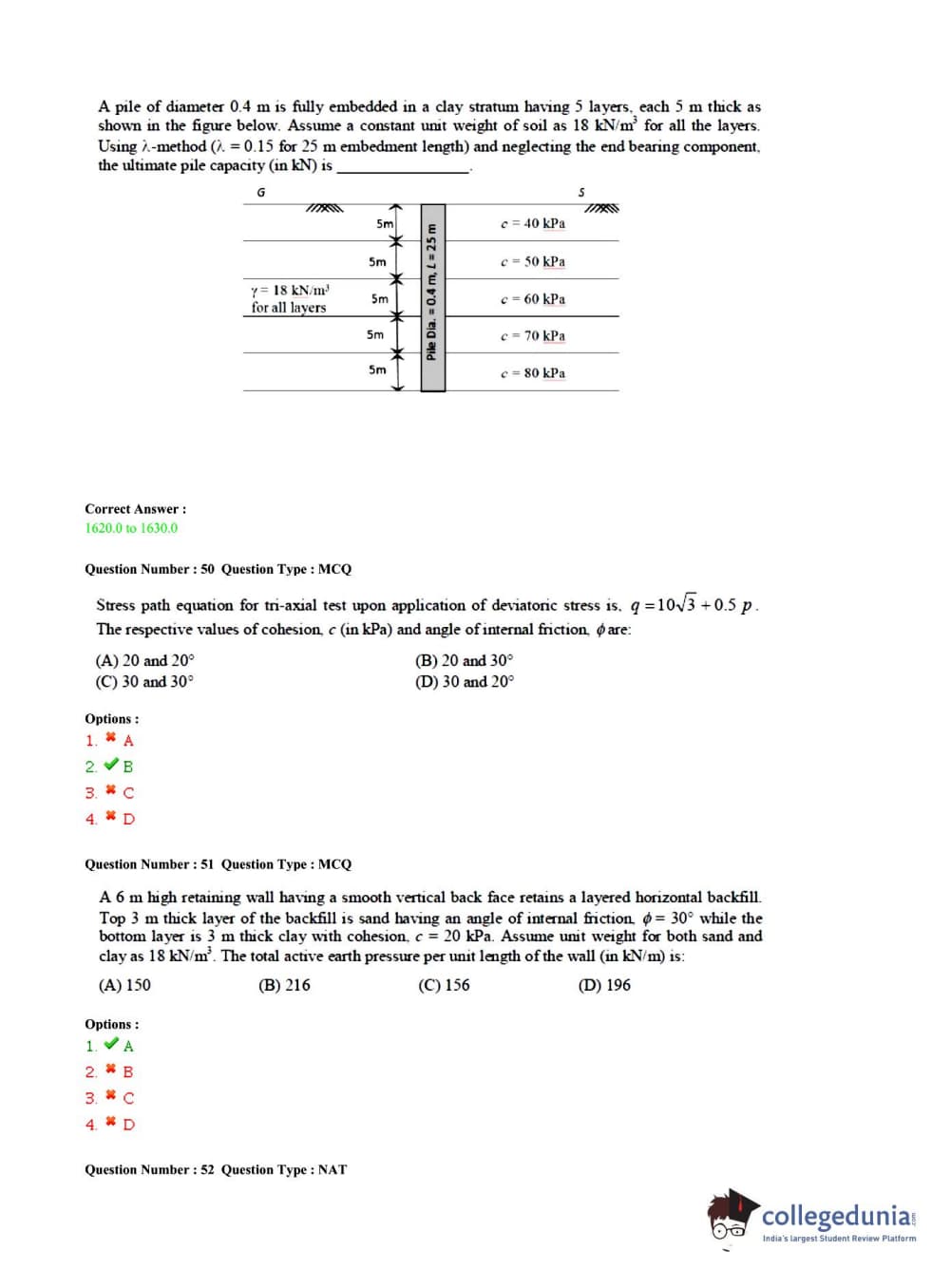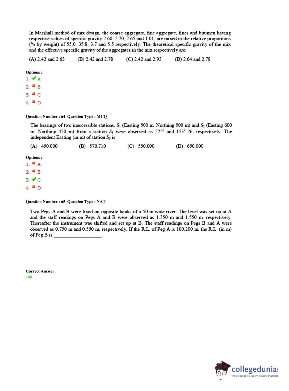 GATE 2015 CE Slot 2 Question Paper with Answer Key PDFs are available to download. GATE 2015 Civil Engineering (CE) Slot 2 paper was conducted by IIT Kanpur on February 8, 2015 in the afternoon session. GATE 2015 CS paper has 65 questions, which include questions related to General Aptitude, Mathematics, and Civil Engineering. The exam was od 3-hour duration with a total of 100 marks. The questions in GATE CE 2015 slot 2 have both Multiple Type Questions(MCQ) and Numerical Answer Type (NAT) Questions. In GATE CE 2015, the question paper has 1 and 2 marks questions, for every incorrect answer marks were deducted respectively. The General Aptitude Section of the Question paper has a total of 10 questions and there were 55 questions related to Civil Engineering. The overall difficulty level of the exam was moderate.