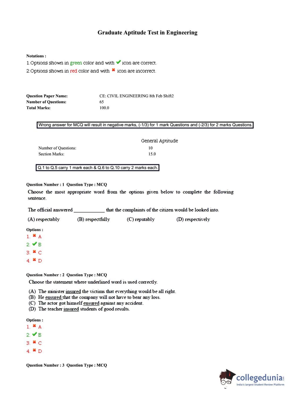 GATE 2015 CE Slot 2 Question Paper with Answer Key PDFs (February 5 - Afternoon session)