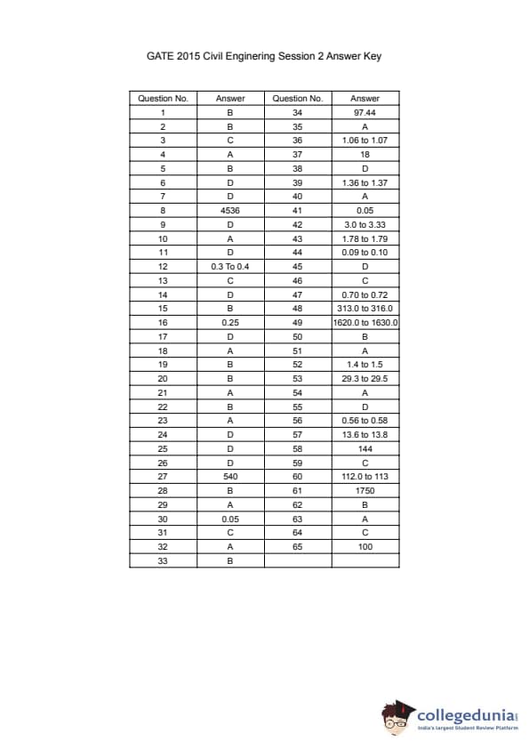 | GATE 2015 CE Slot 2 Question Paper | GATE 2015 CE Slot 2 Answer Key |