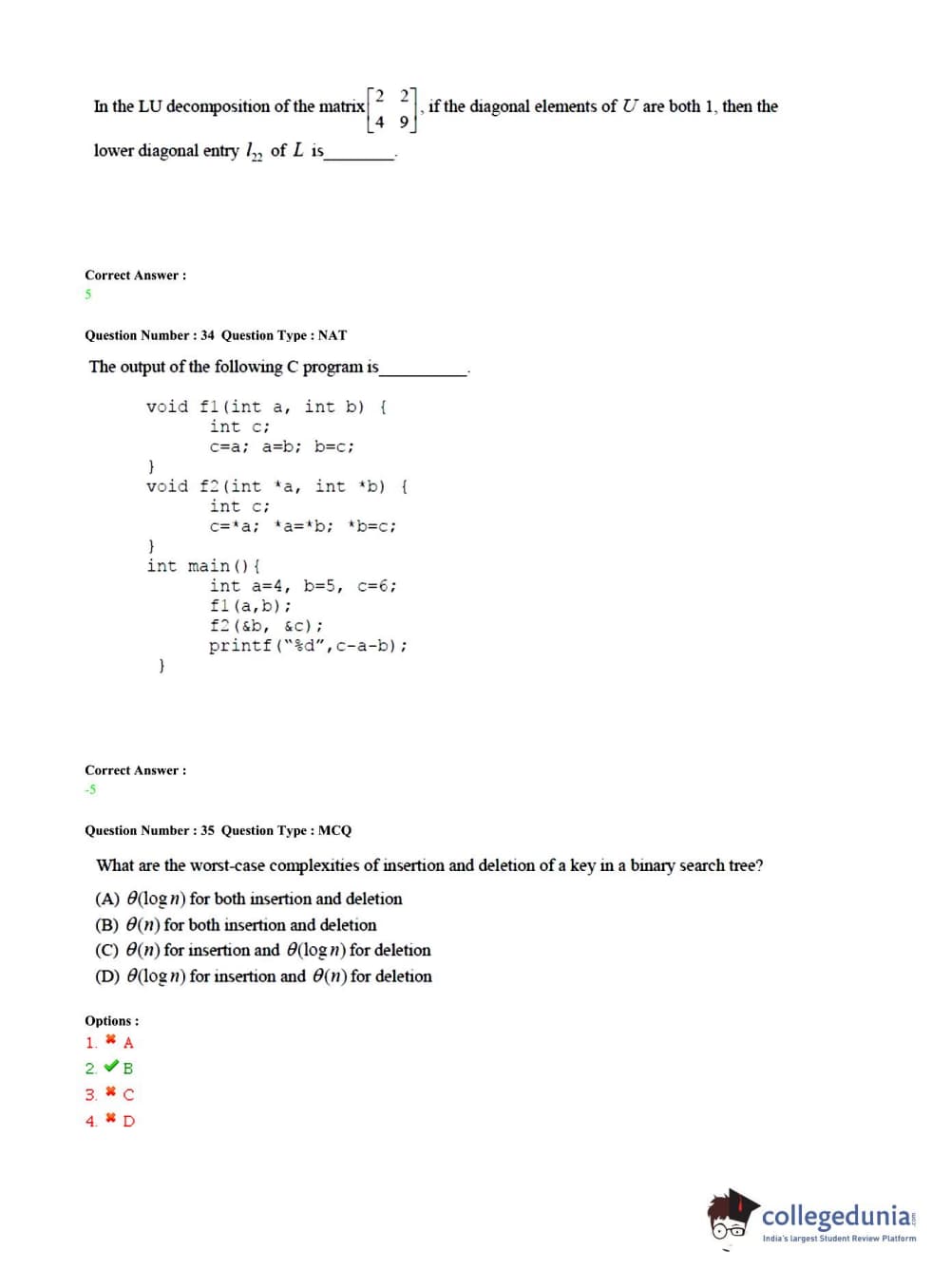 GATE 2015 CS Slot 1 Question Paper with Answer Key PDFs (February 7 - Forenoon Session)