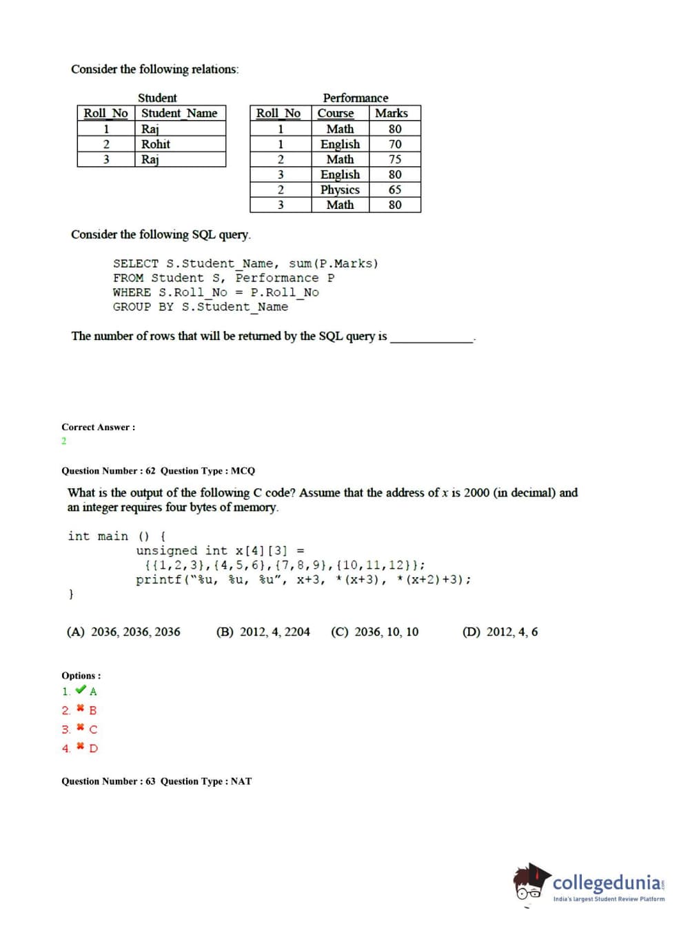 | No. of 2 marks NATs | 1 | 2 | 15 | 30 |