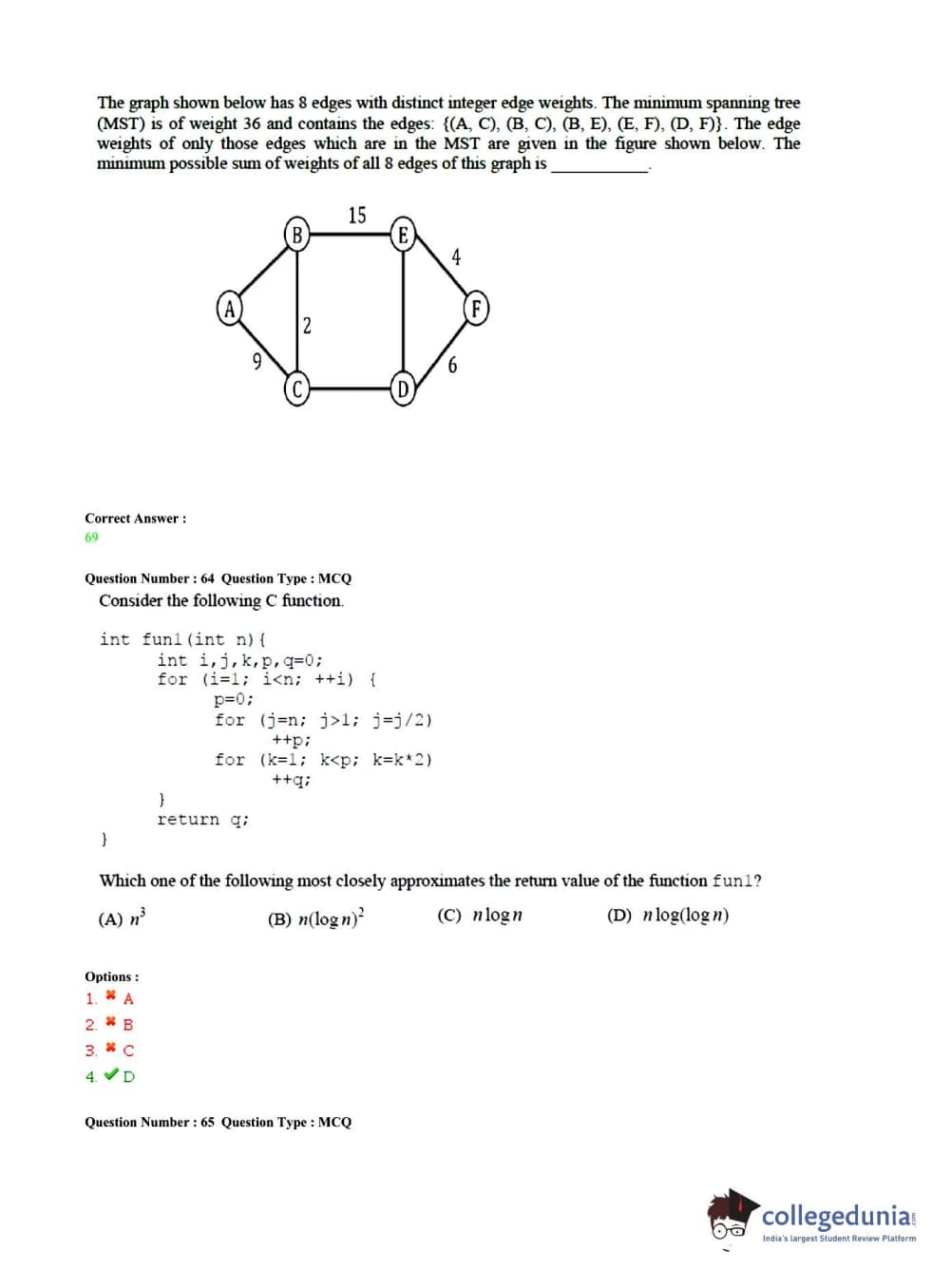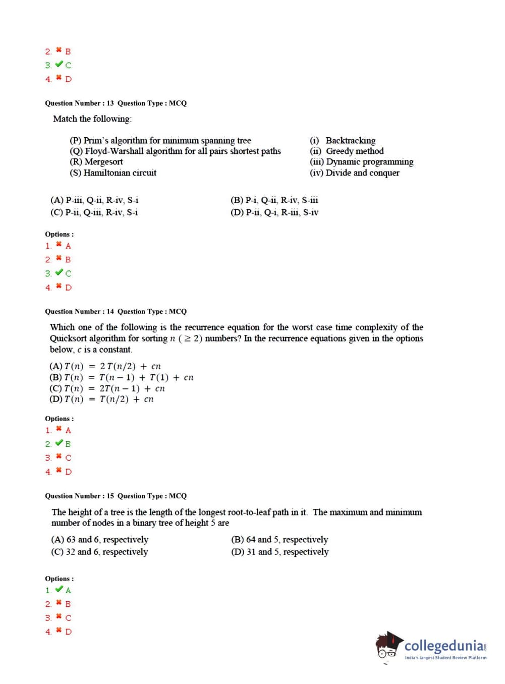 | GATE 2015 CS Slot 1 Question Paper | GATE 2015 CS Slot 1 Answer Key |