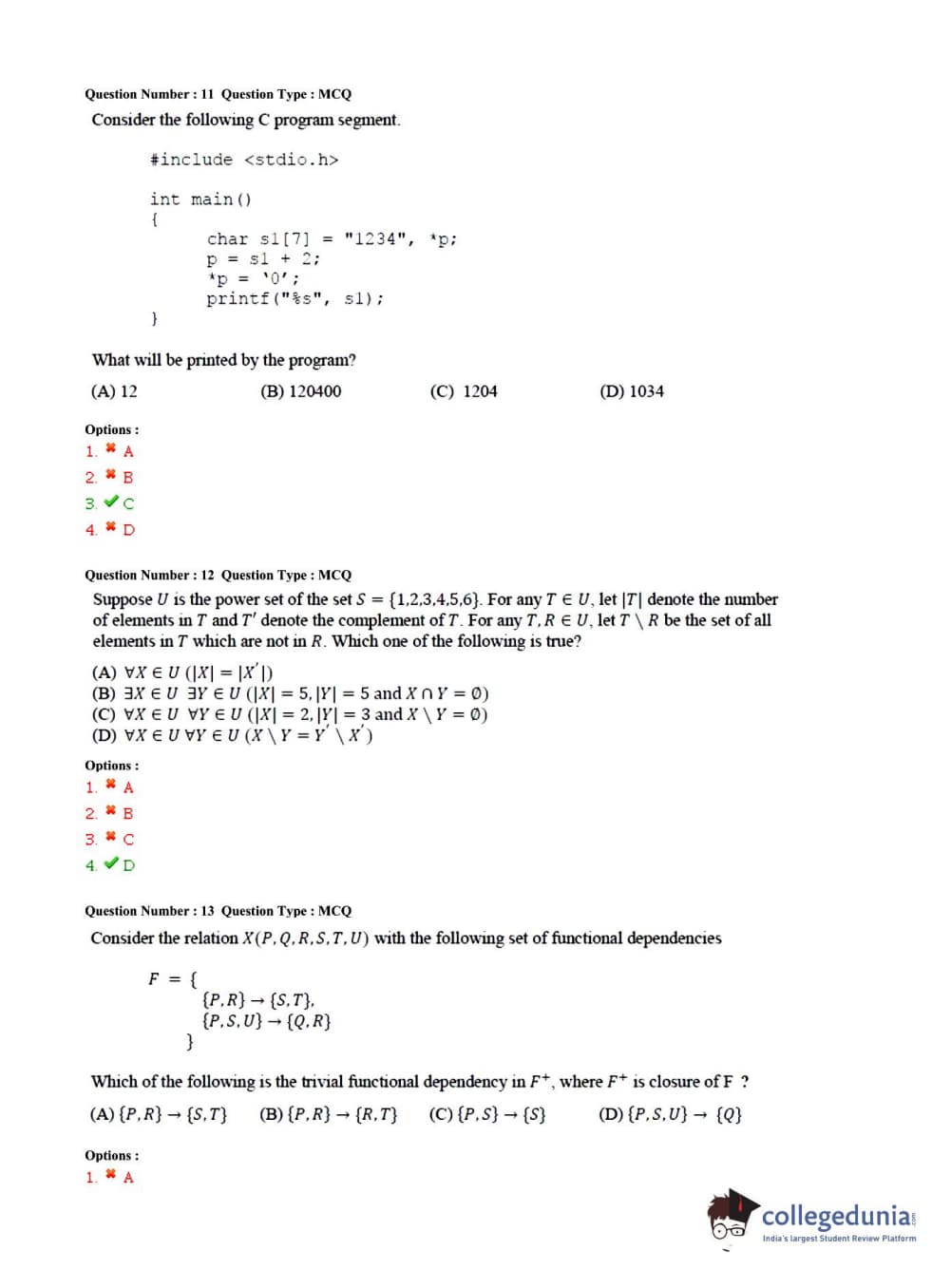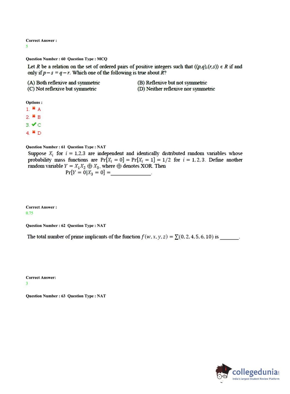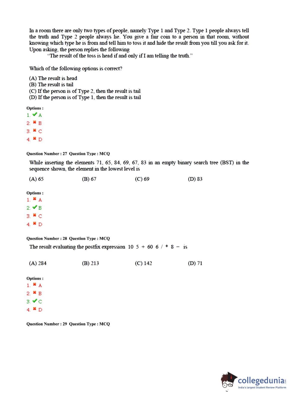 GATE 2015 CS Slot 3 Question Paper with Answer Key PDFs are available to download. GATE 2015 Computer Science and Information Technology(CS) Slot 3 was conducted by IIT Kanpur on February 8, 2015 in the Forenoon session. The paper consisted of 65 questions, it was a 100 marks paper. GATE CS 2015 had questions related to General Aptitude and Computer Science and Information Technology. Slot 3 of GATE CS 2015 was a 3-hour duration exam. Both Multiple Type Questions(MCQ) and Numerical Answer Type (NAT) questions were available in the question paper of GATE CS 2015 having questions of 1 and 2 marks, and for every incorrect answer of 1 and 2 marks were deducted respectively. Aspirants evaluated the difficulty level of the exam as moderate.