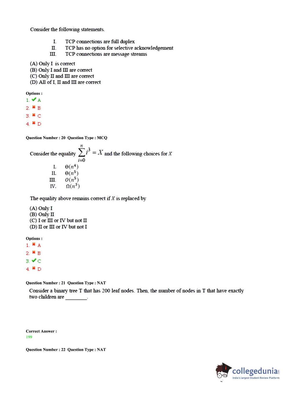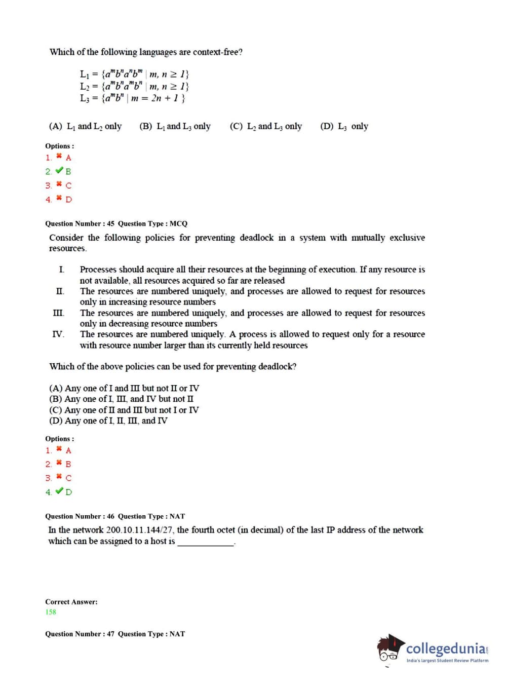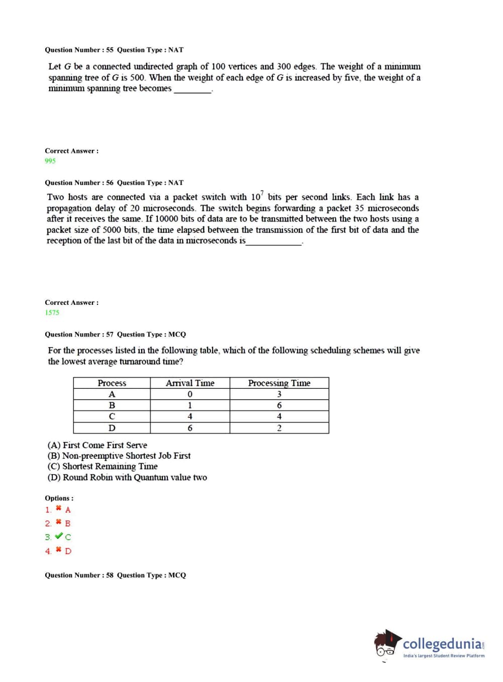 GATE 2015 CS Slot 3 Question Paper with Answer Key PDFs are available to download. GATE 2015 Computer Science and Information Technology(CS) Slot 3 was conducted by IIT Kanpur on February 8, 2015 in the Forenoon session. The paper consisted of 65 questions, it was a 100 marks paper. GATE CS 2015 had questions related to General Aptitude and Computer Science and Information Technology. Slot 3 of GATE CS 2015 was a 3-hour duration exam. Both Multiple Type Questions(MCQ) and Numerical Answer Type (NAT) questions were available in the question paper of GATE CS 2015 having questions of 1 and 2 marks, and for every incorrect answer of 1 and 2 marks were deducted respectively. Aspirants evaluated the difficulty level of the exam as moderate.