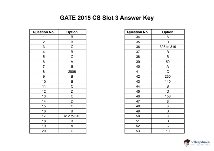 | GATE 2015 CS Slot 3 Question Paper | GATE 2015 CS Slot 3 Answer Key |