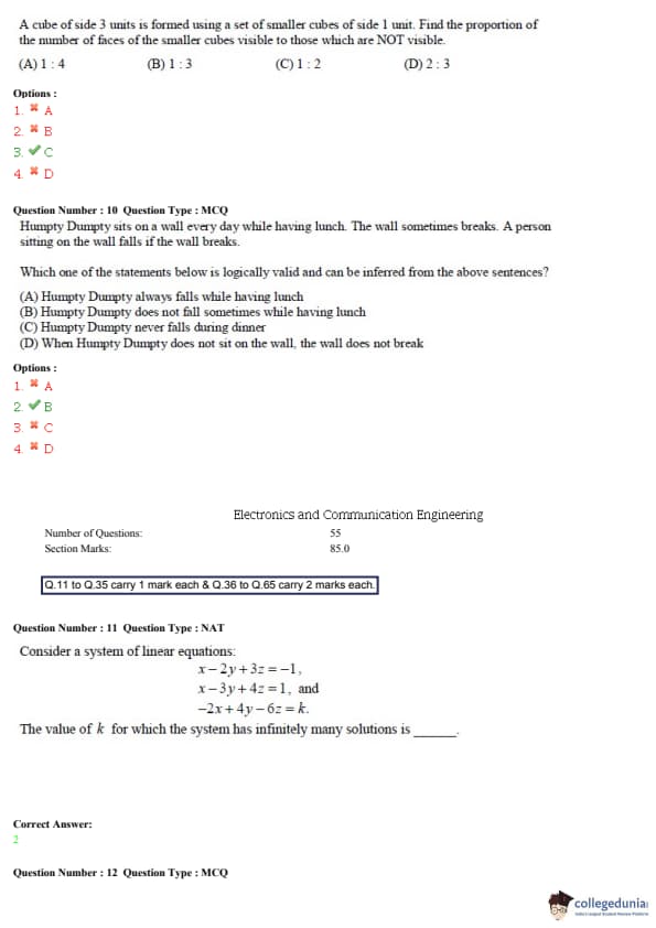- According to the question paper format, 0.33 marks were deducted for every 1 mark MCQ and 0.66 marks were deducted for every 2 mark MCQ. However, there was no negative marking for NAT questions.