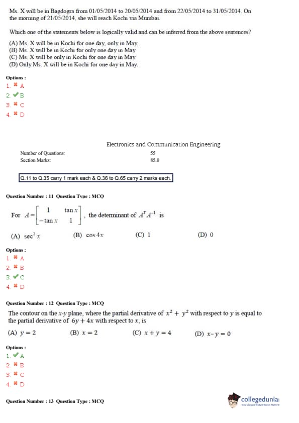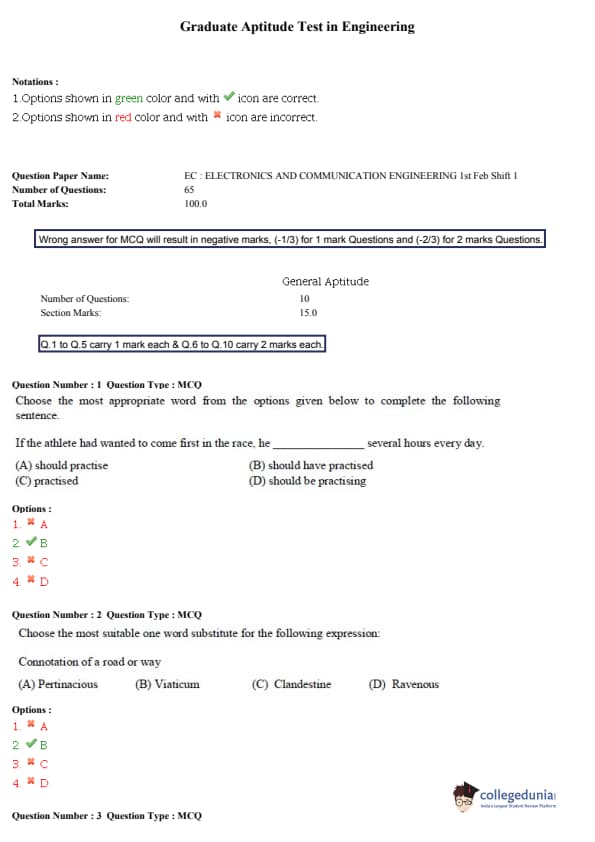 GATE 2015 EC Question Paper with Answer Key PDF Slot 3 is available for download. GATE 2015 EC slot 3 paper was conducted by IIT Kanpur on February 1, 2015, in the forenoon session. The test-takers rated GATE 2015 EC (slot 3) question paper to be of moderate to difficult level. GATE 2015 EC question paper (slot 3) consisted of 65 questions divided into 2 sections- general aptitude and electronics & communication engineering.