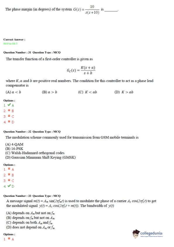 As per the marking scheme, 1 mark and 2 mark MCQs carried a negative marking of 0.33 and 0.66 marks respectively for incorrect responses. For NAT questions, no marks were deducted for incorrect answers.