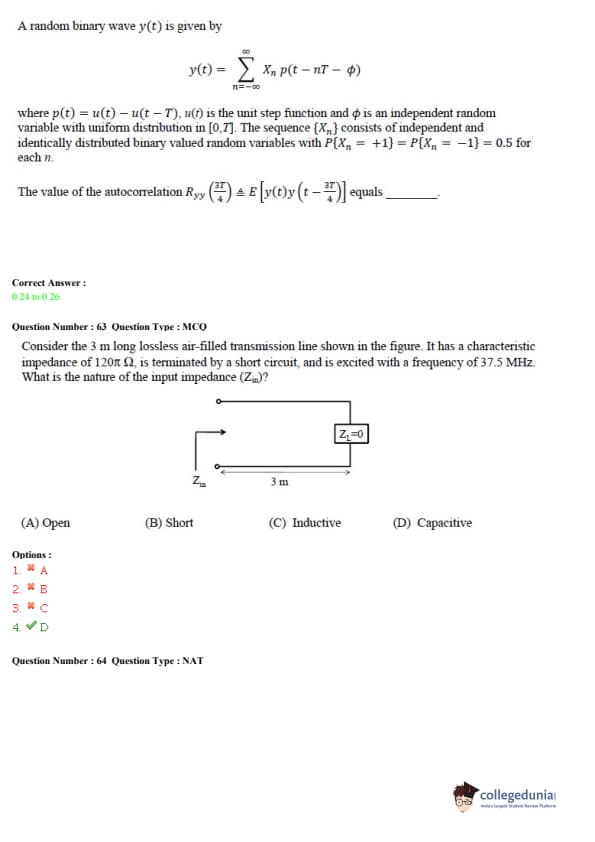 GATE 2015 EC Question Paper with Answer Key PDFs Slot 3 – Feb 01, 2015 (Forenoon Session)