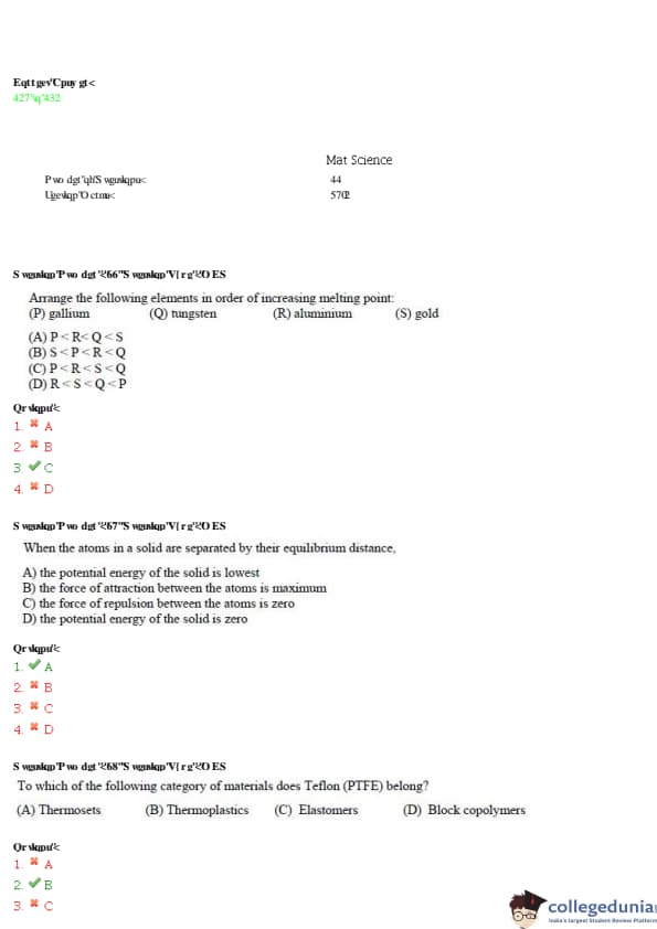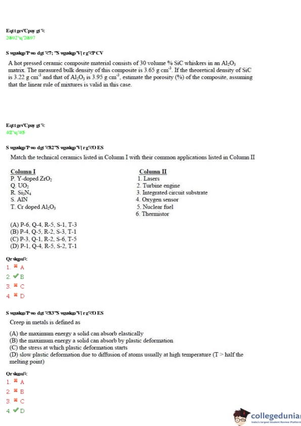 GATE 2015 Engineering Sciences (XE) Question Paper and Answer Key PDFs are now available to download. GATE Engineering Sciences Paper was conducted by IIT Kanpur on 31st January, 2015 in the Forenoon Session. The test-takers described the difficulty level as between moderate and difficult. GATE 2015 XE Question Paper consisted of a total of 65 Questions out of which General Aptitude Section comprised of 10 Questions and Metallurgical Engineering Section consisted of 55 questions.