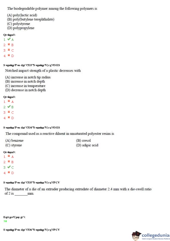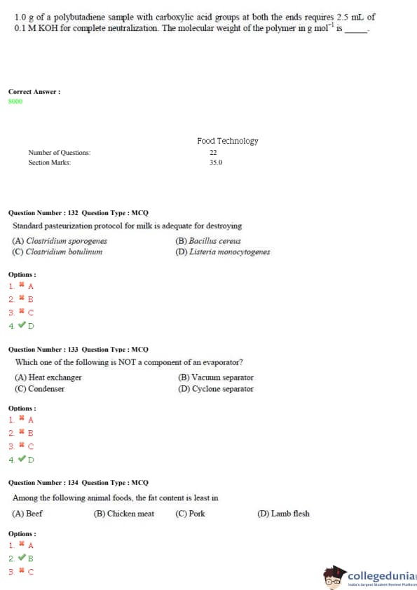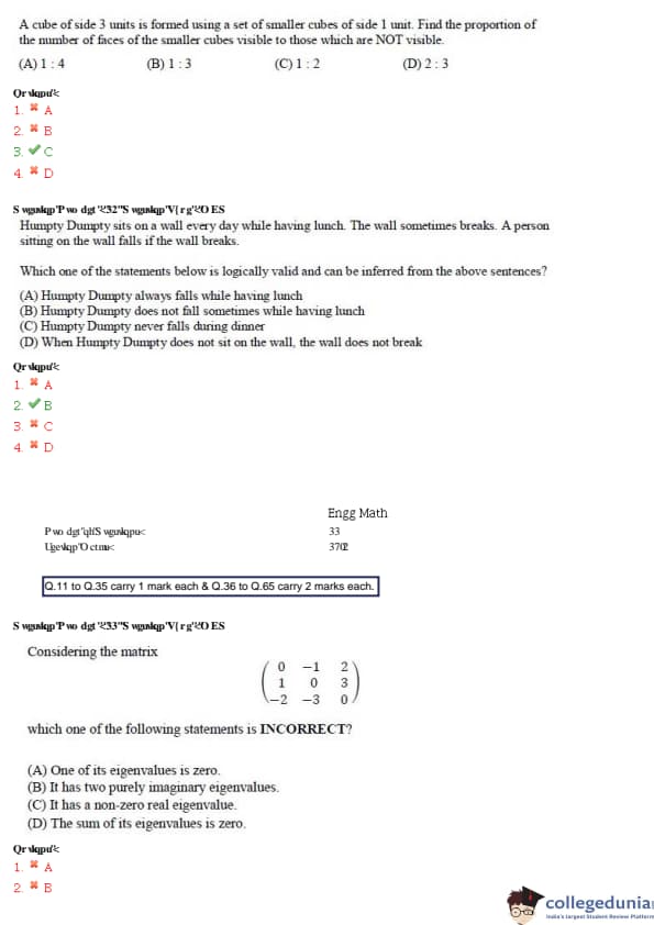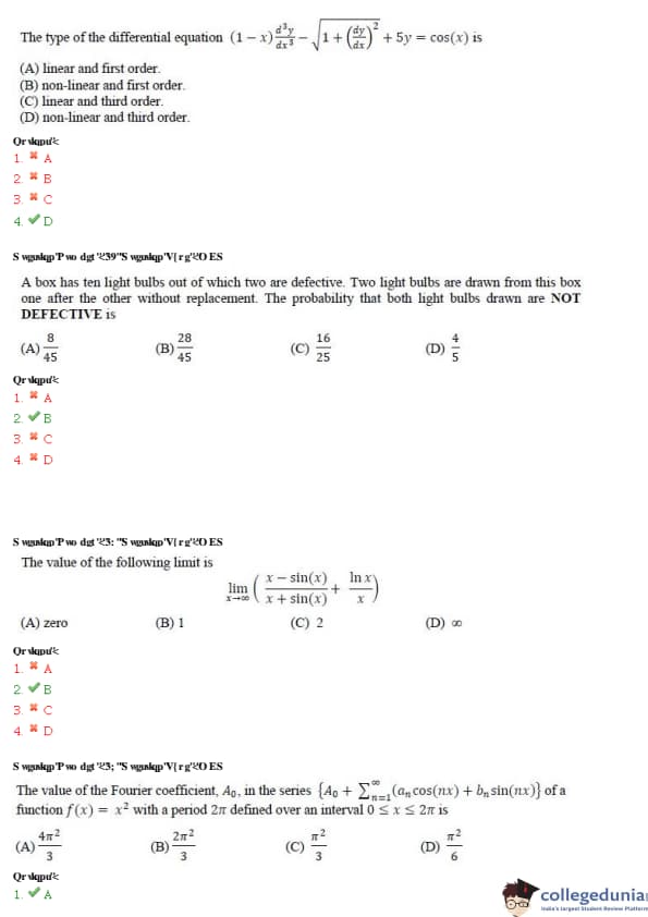 - In Multiple Choice Questions (MCQs), there wasone-third negative marking for wrong answer in one mark MCQs two-third negative marking for wrong answer in two marks MCQs in GATE XE Paper.