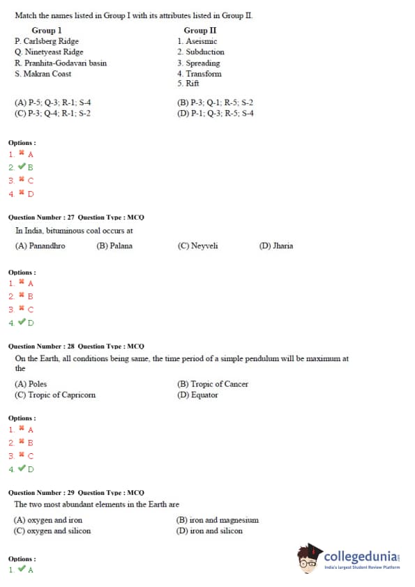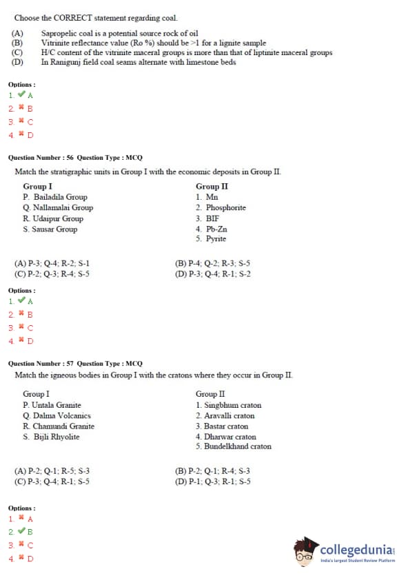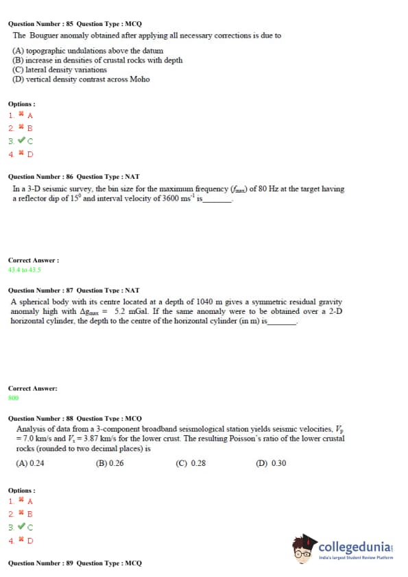 GATE 2015 Geology and Geophysics (GG) Question Paper with Answer Key PDF – Afternoon Session