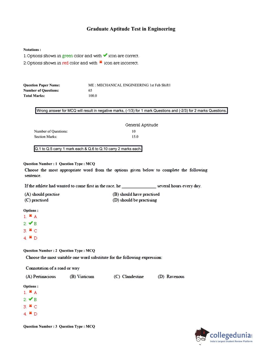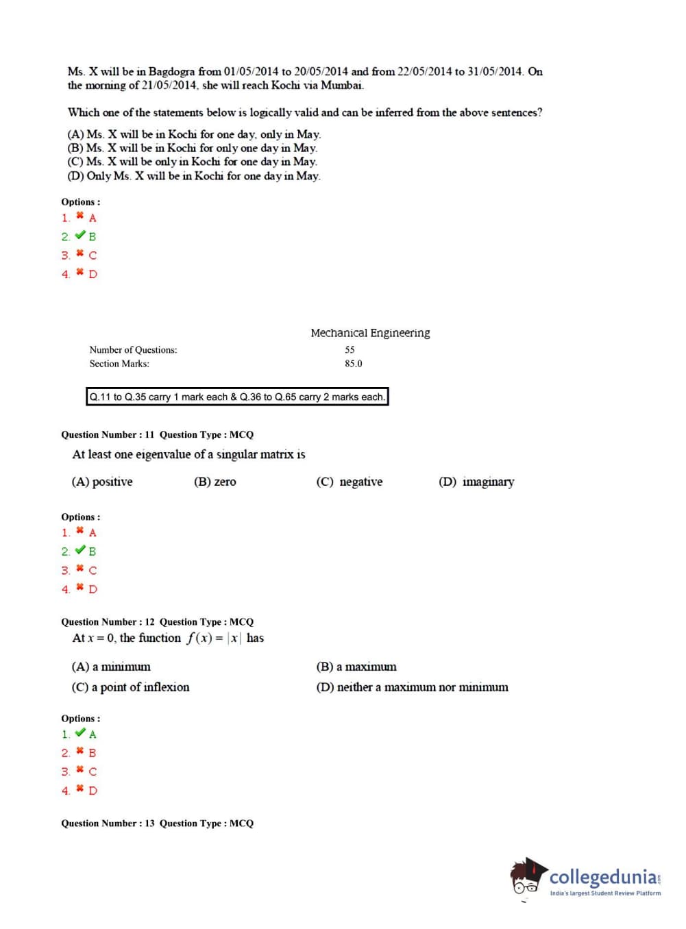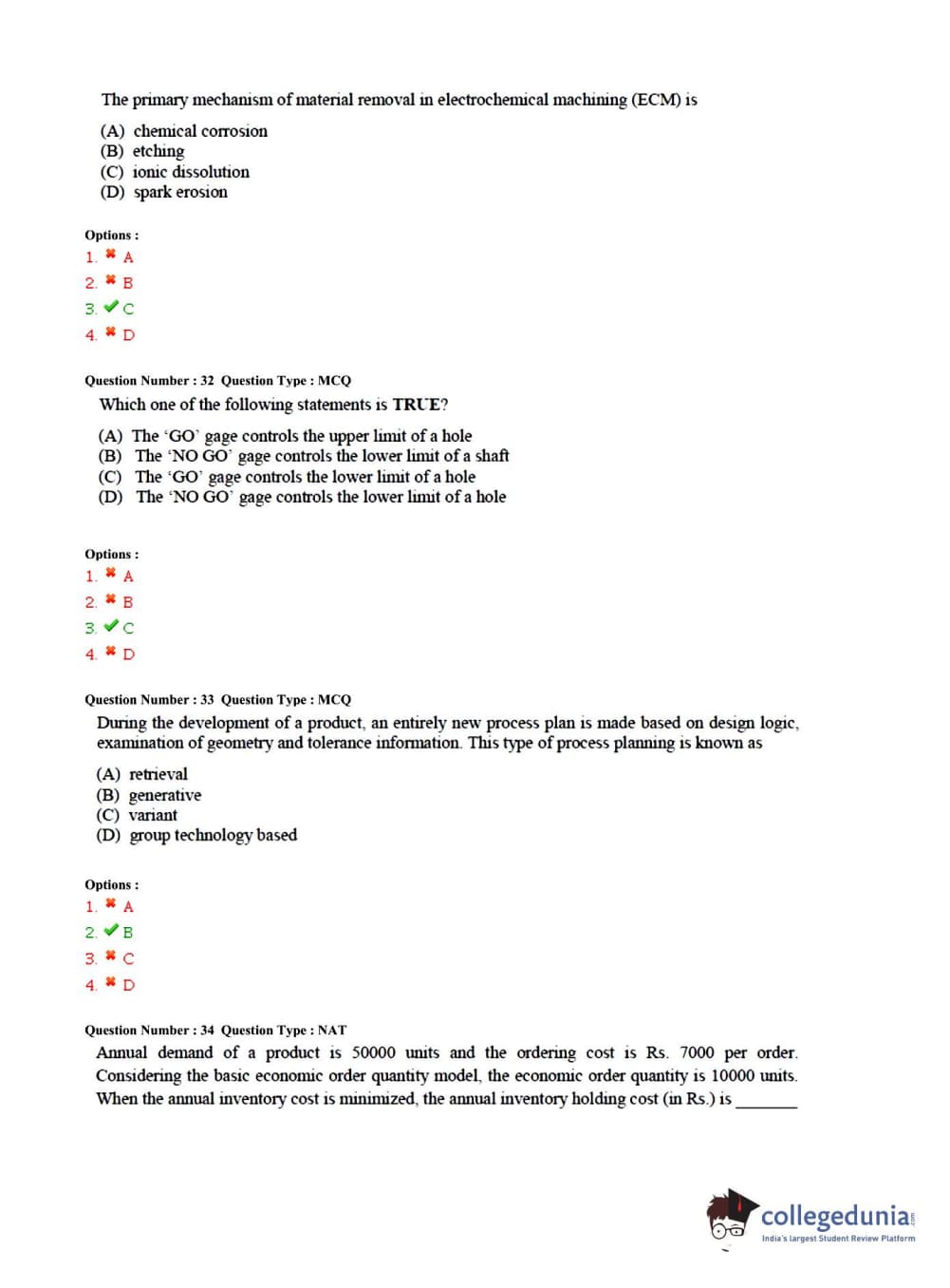 GATE 2015 Mechanical Engineering (ME)- Slot 2 Question Paper with Answer Key PDFs -Forenoon Session