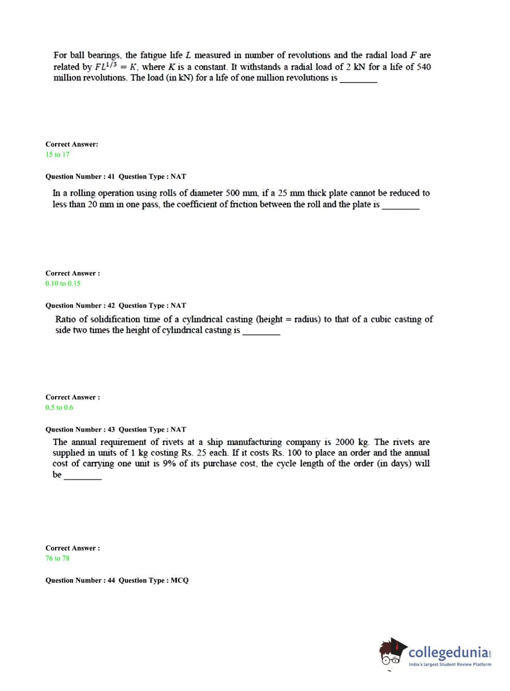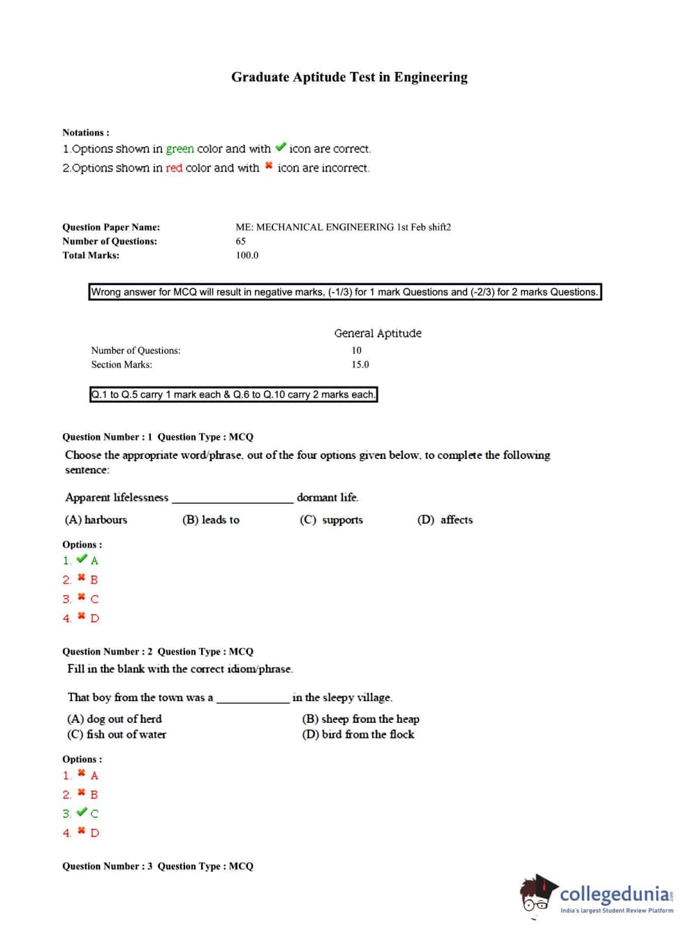GATE 2015 Mechanical Engineering (ME)- Slot 3 Question Paper with Answer Key PDFs -Afternoon Session