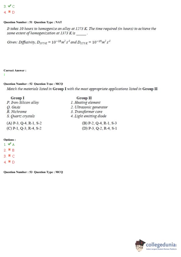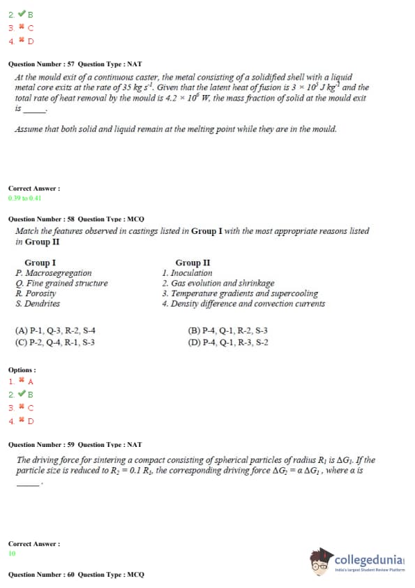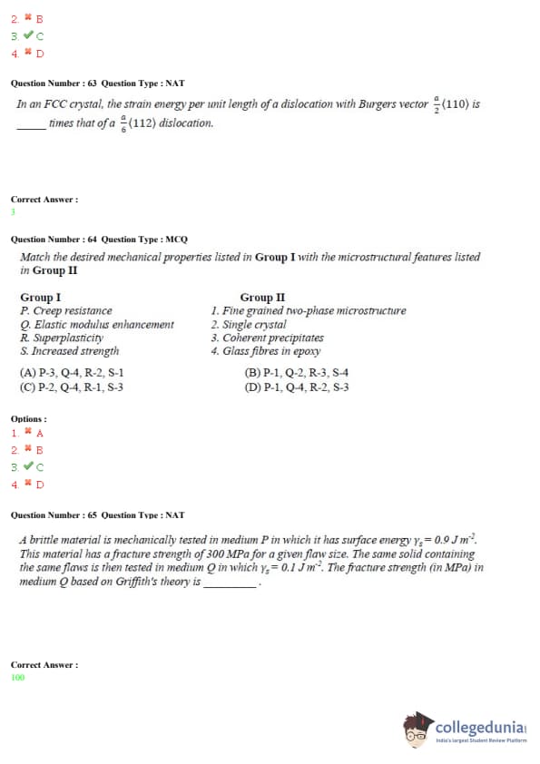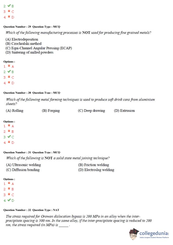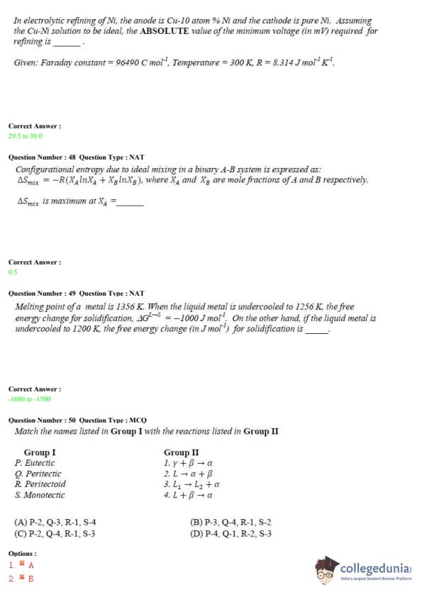 GATE 2015 Metallurgical Engineering (MT) Question Papers with Answer Key PDFs (February 1-Afternoon Session)