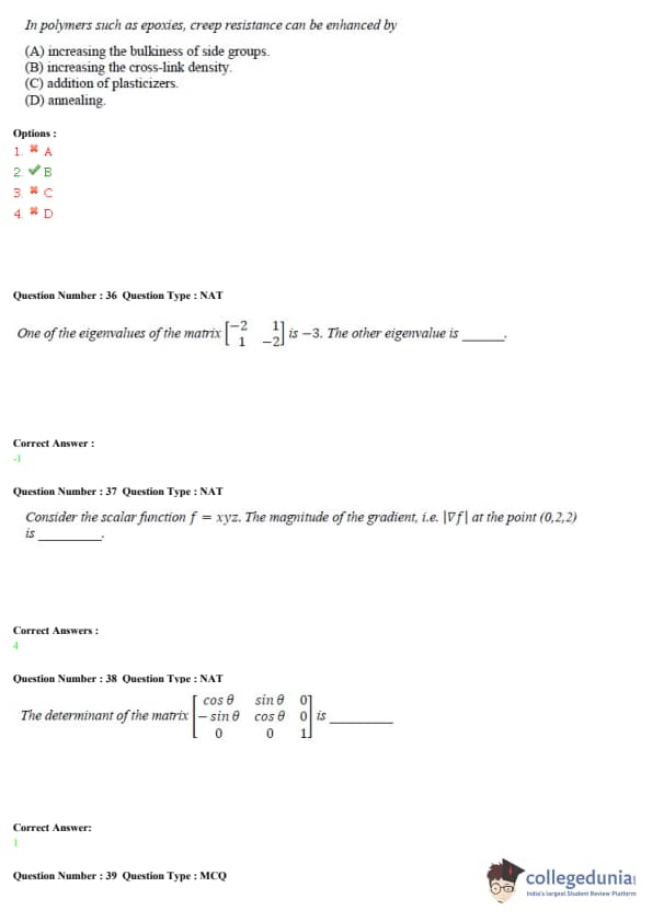 - In Numerical Answer Type (NATs), there will be no negative marking for wrong answer.