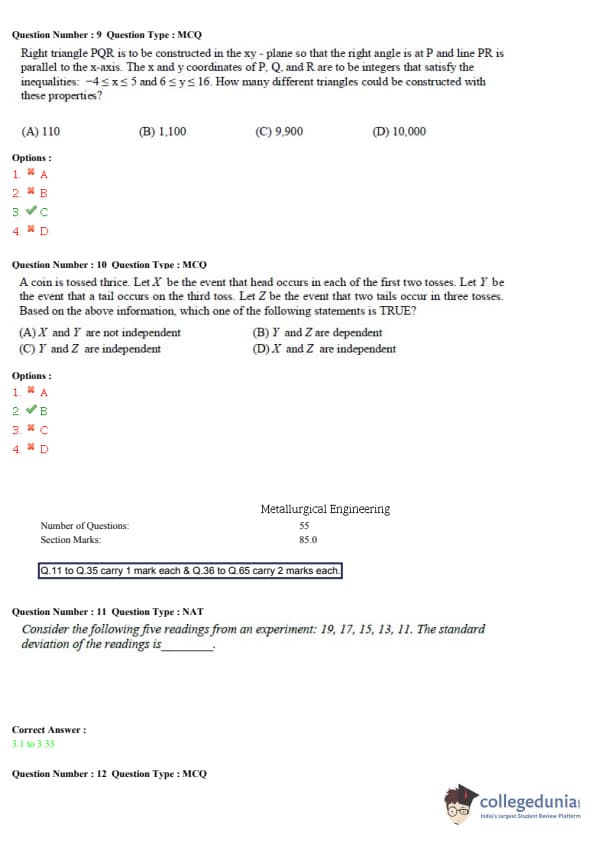- Metallurgical Engineering paper had seven sections: Engineering Mathematics, Core Subject and General Aptitude.