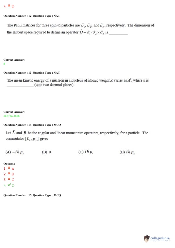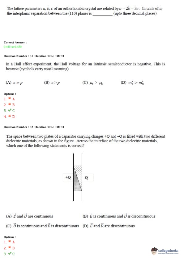 GATE 2015 PH Answer Key Details