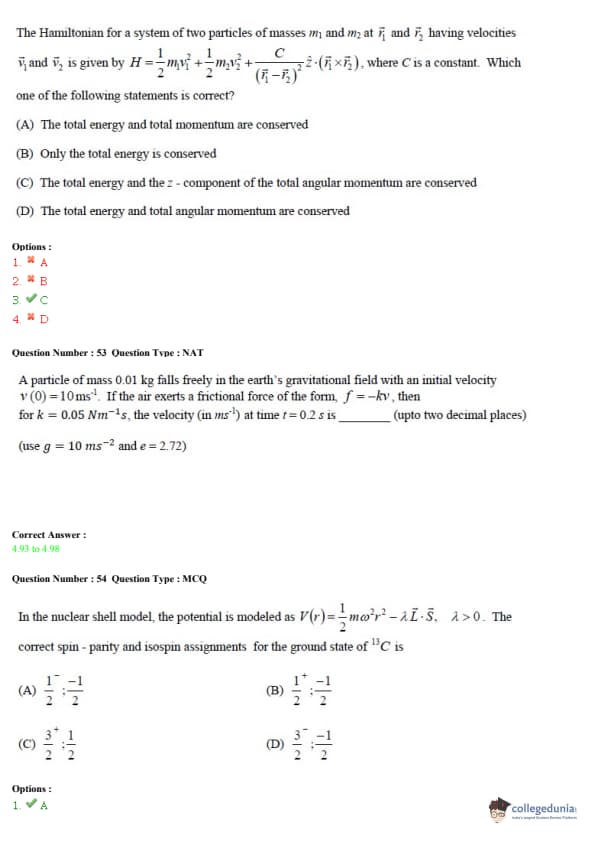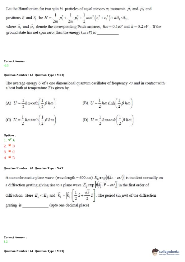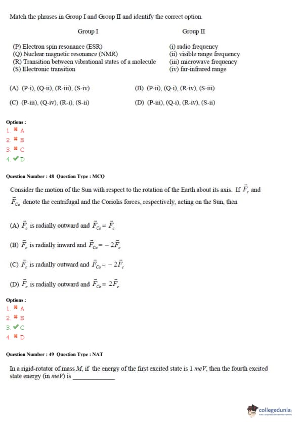 - The paper had two types of questions: Multiple Choice Questions (MCQs) and Numerical Answer Type (NATs).