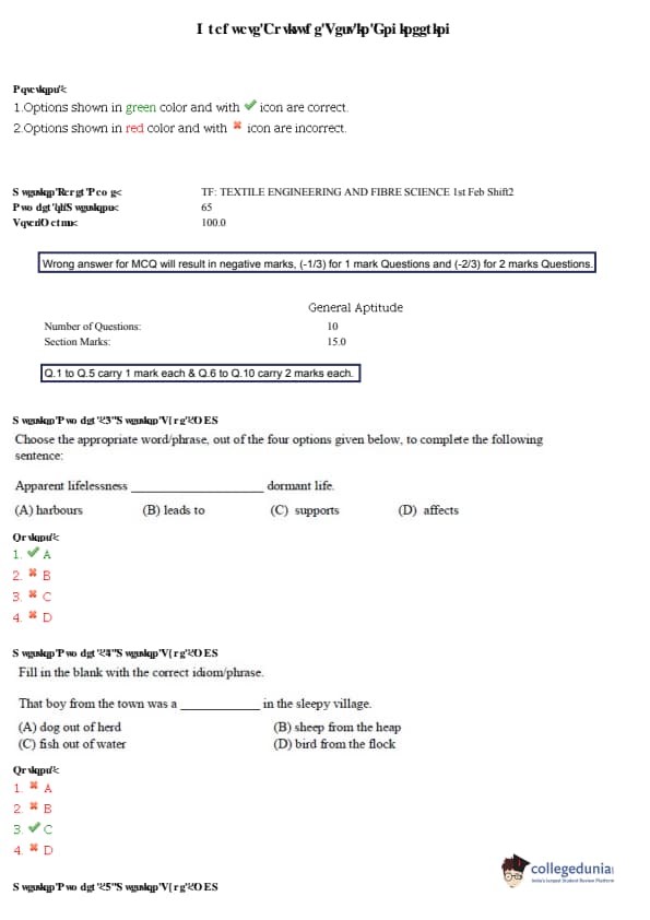 GATE 2015 Textile Engineering and Fibre Science (TF) Detailed Paper Analysis