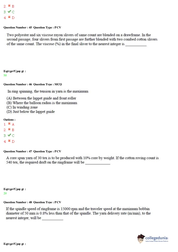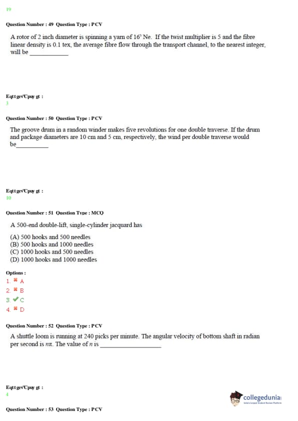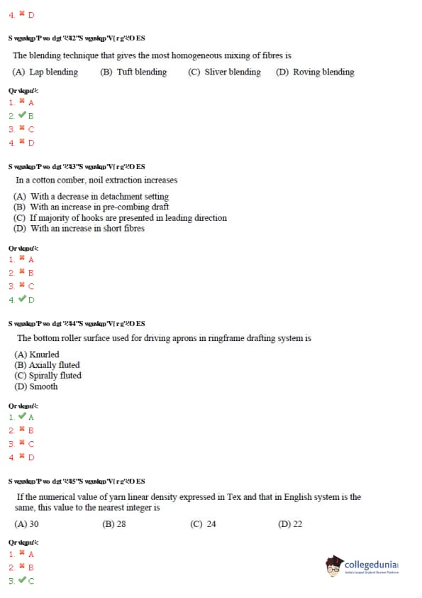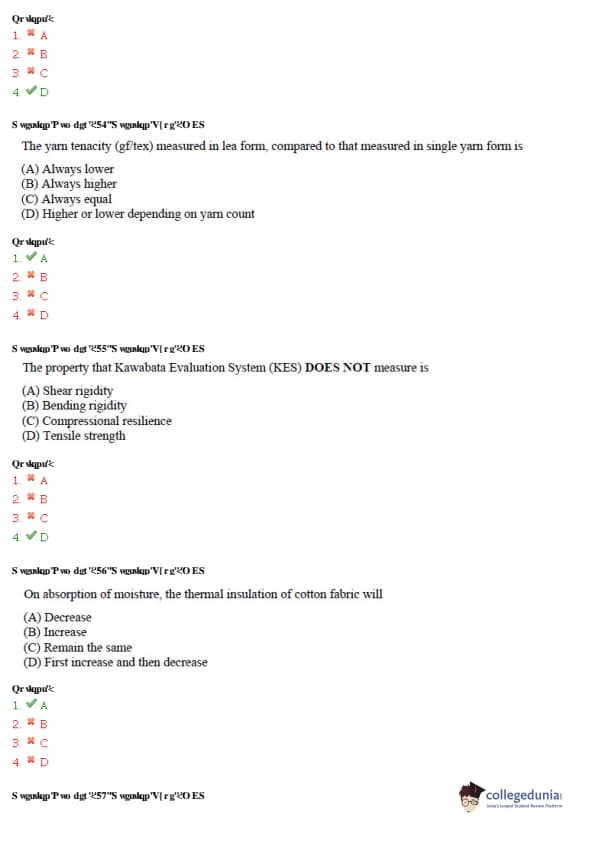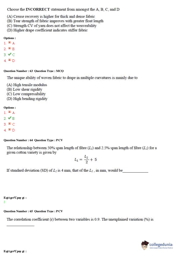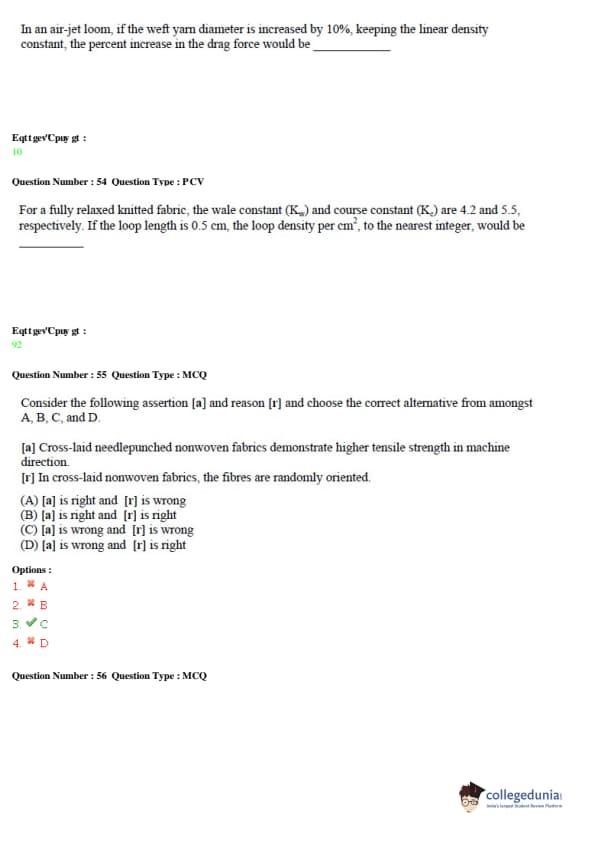 - Textile Engineering and Fibre Science Question Paper consisted of Multiple Choice Questions (MCQs) and Numerical Answer Type (NATs).