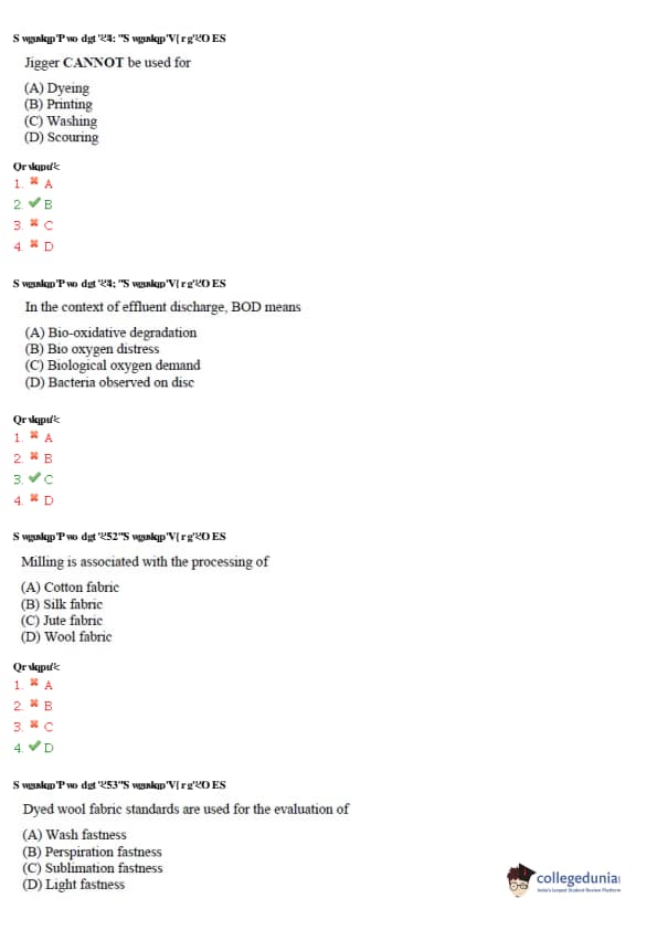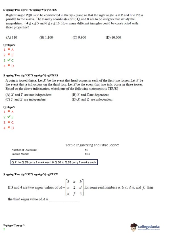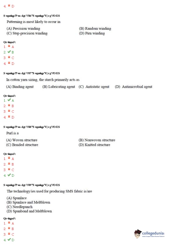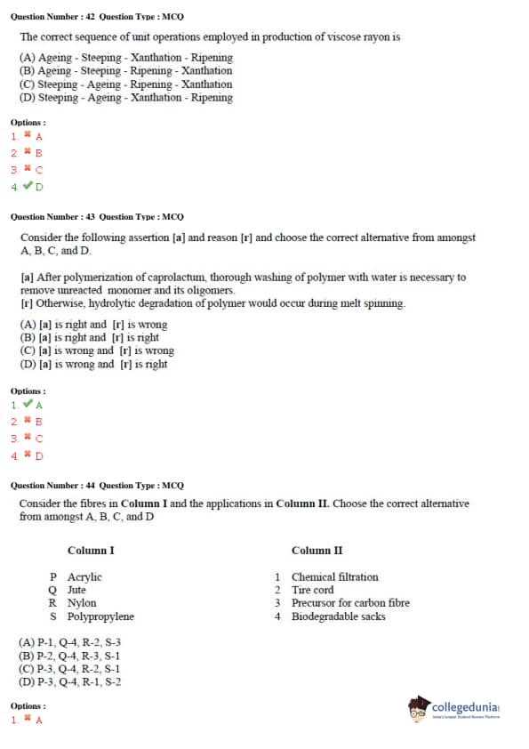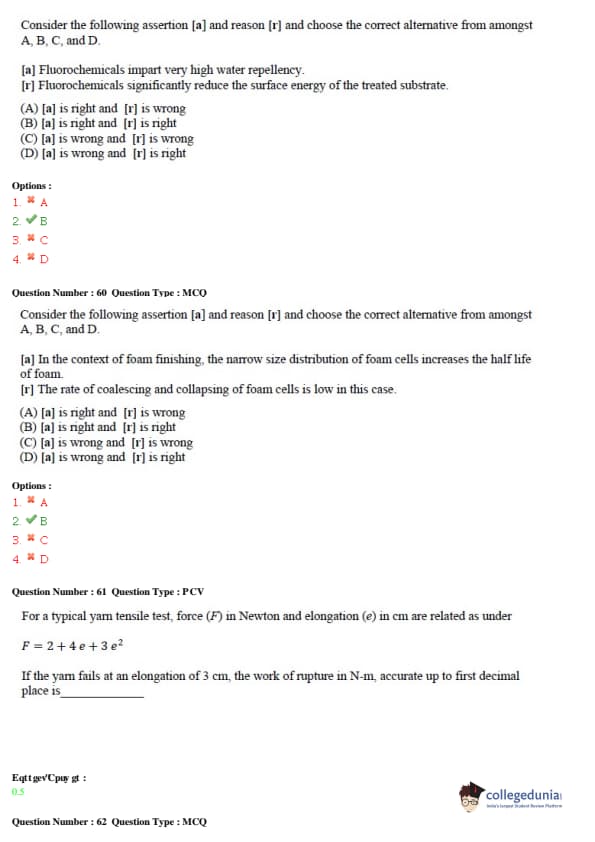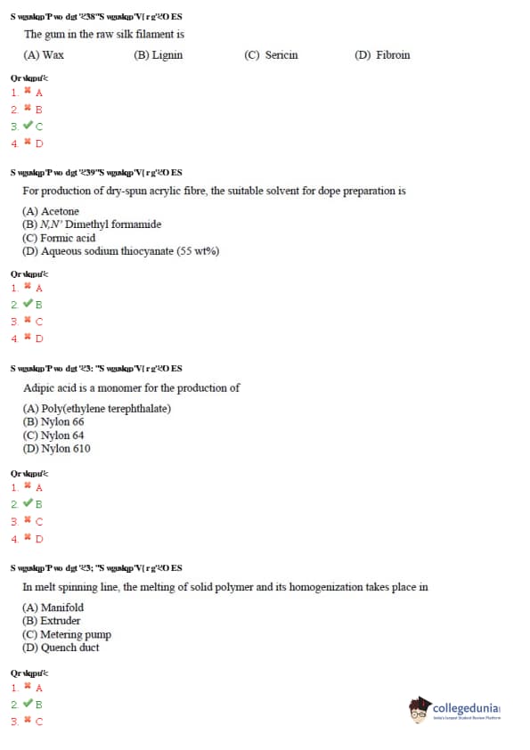 - Textile Engineering and Fibre Science Question Paper consisted of Multiple Choice Questions (MCQs) and Numerical Answer Type (NATs).